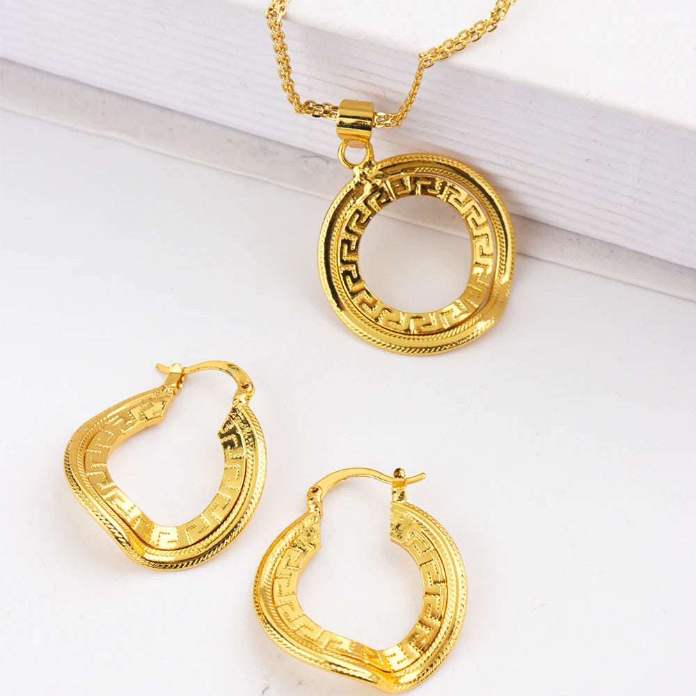 24K Gold-plated Two Piece Copper Jewelry Set Waterproof Earrings Warped Geometry Necklace Apply to America India Party Wedding