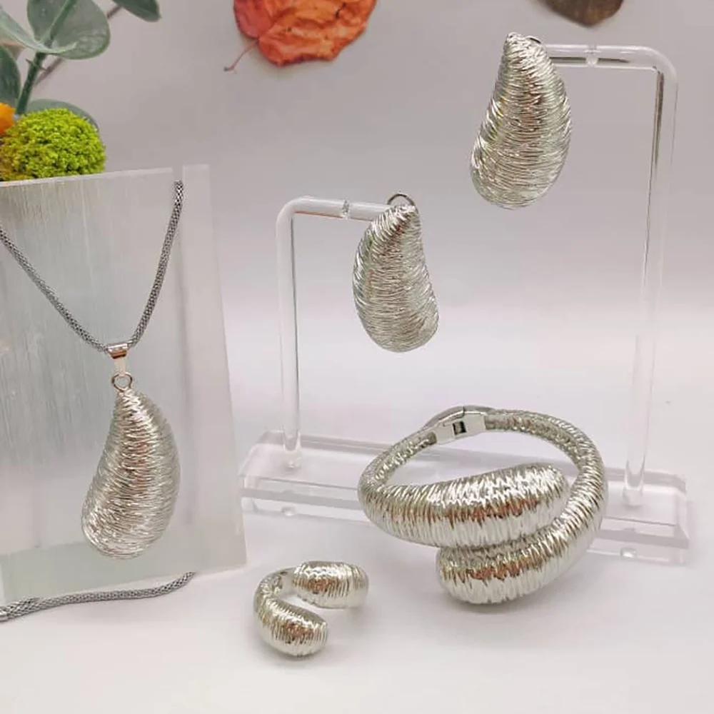 African Jewelry Set for Women Copper Alloy Earrings and Pendant Necklace Bangle Ring Set for Nigerian Daily Wear Party Gift
