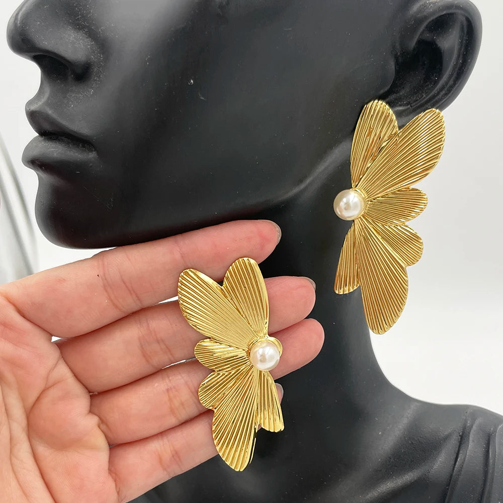 Butterfly Wings Stud Earrings For Women Luxury White Imitation Pearl Jewellery Anti-allergy Party Waterproof Aesthetic Jewelry