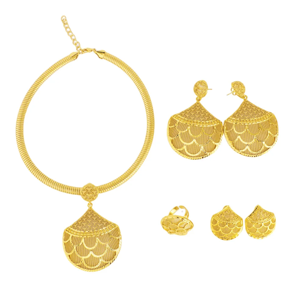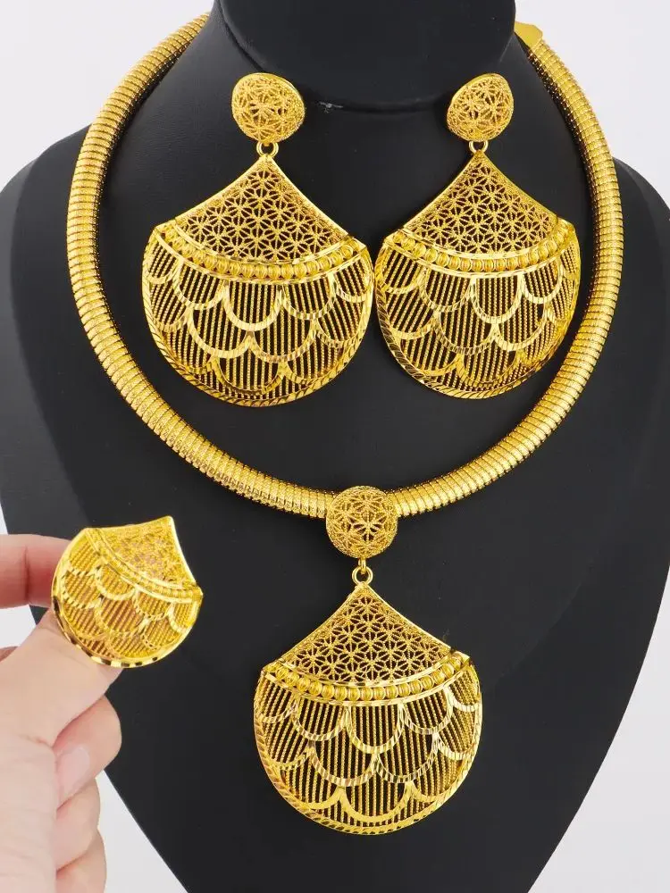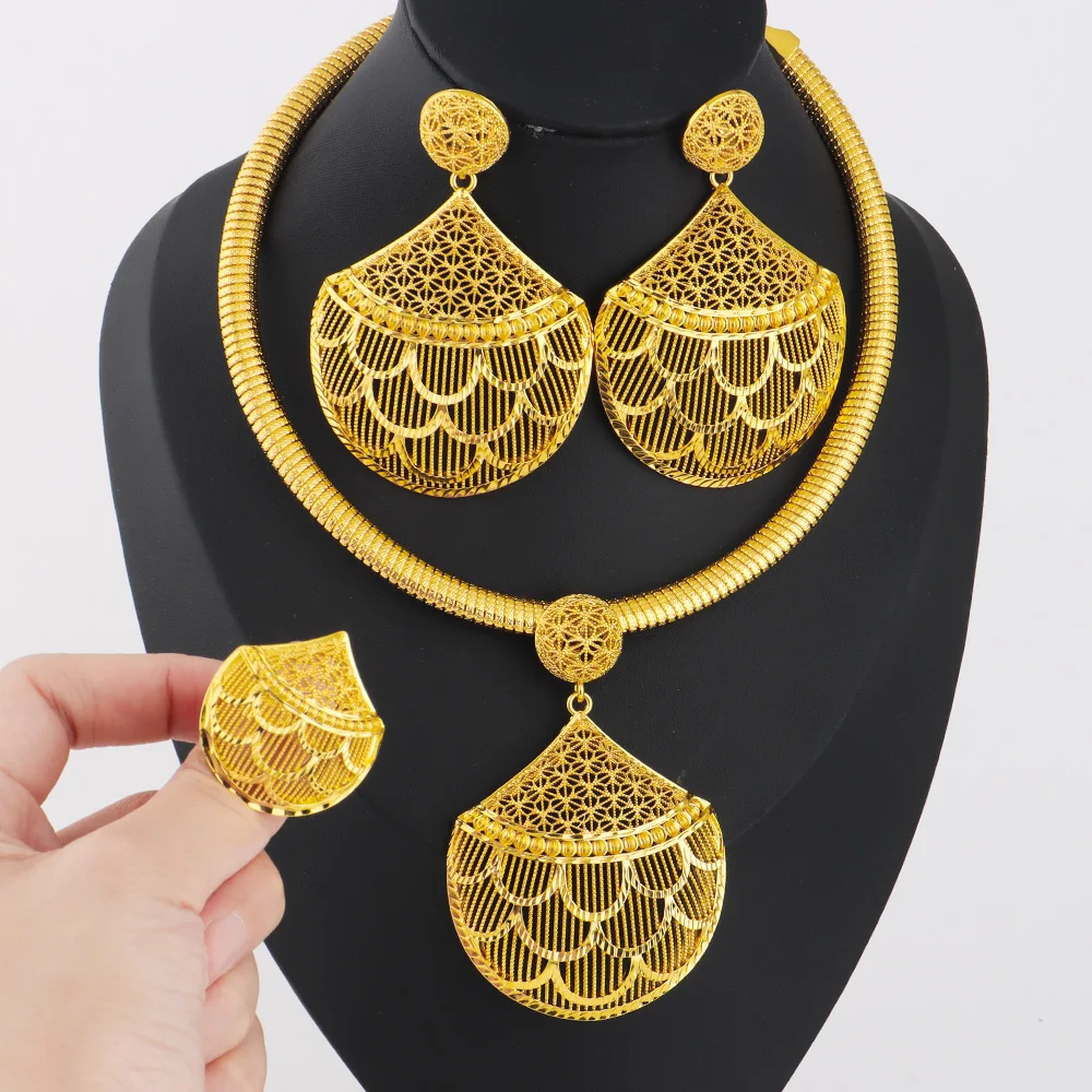 Royal Indian Flower Jewelry Set Stainless Steel Necklace Earrings Women Bridal Gift