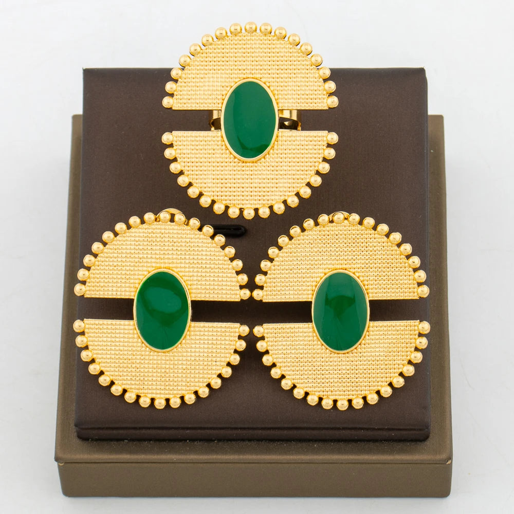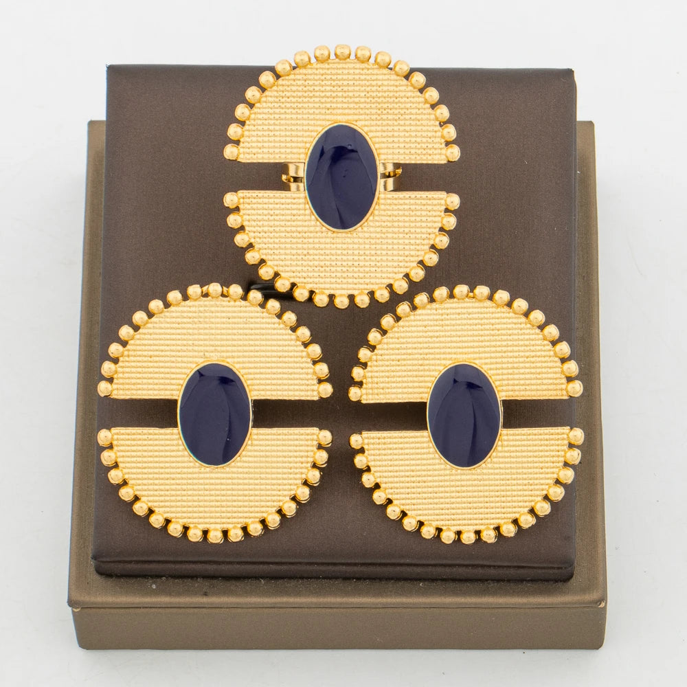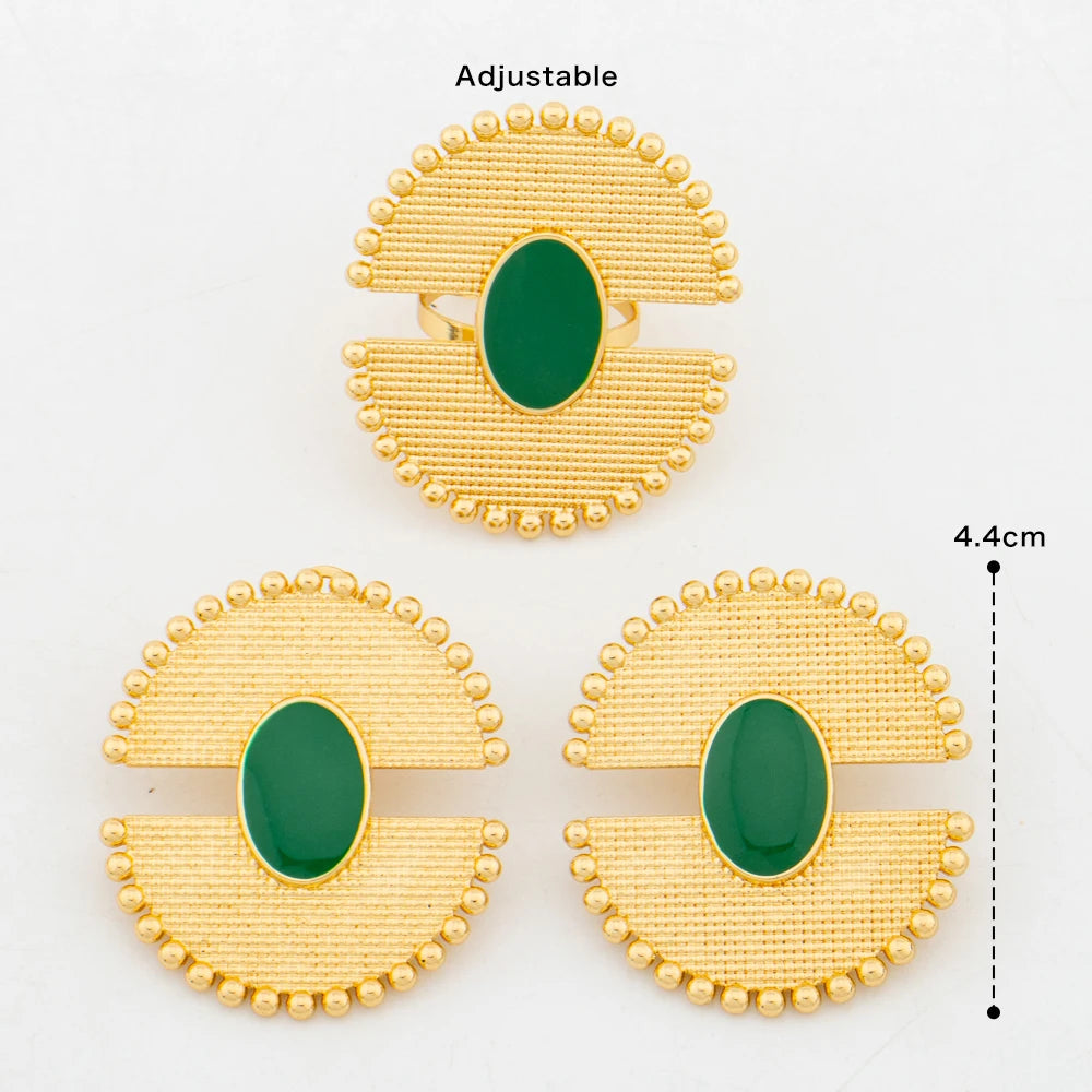 Women 18k Gold Color earrings ring Set Colorful 2pcs jewelry set Dubai engagement jewelry set Wedding Gift Accessories
