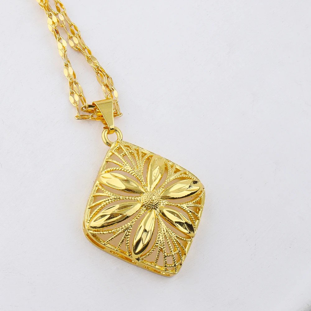 24K Gold Color Flower Pendant Necklaces for Women 18 inch Water Wave Chain Collar High Quality Luxury Jewelry Accessories