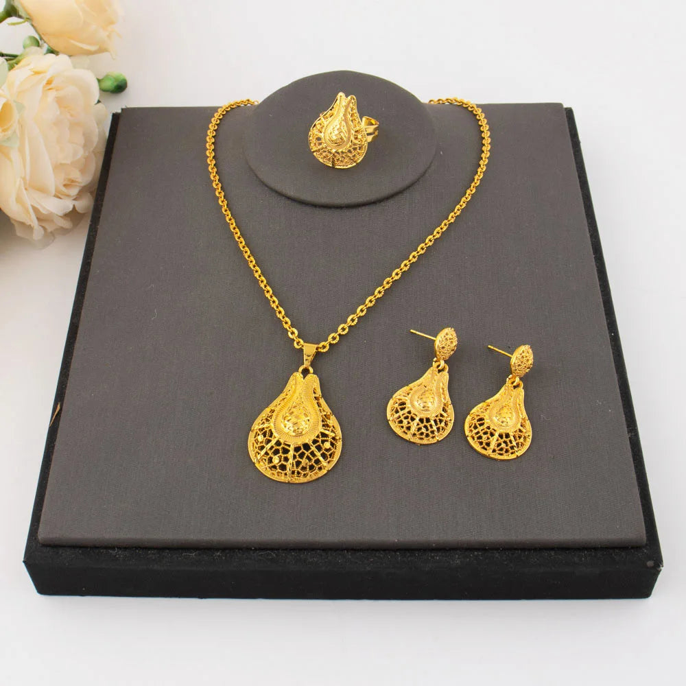 Dubai Bridal Gold Jewelry Set for Women, Middle-East Costume Necklace Earrings, Indian Wedding Party Gift, Luxe Statement Bridal