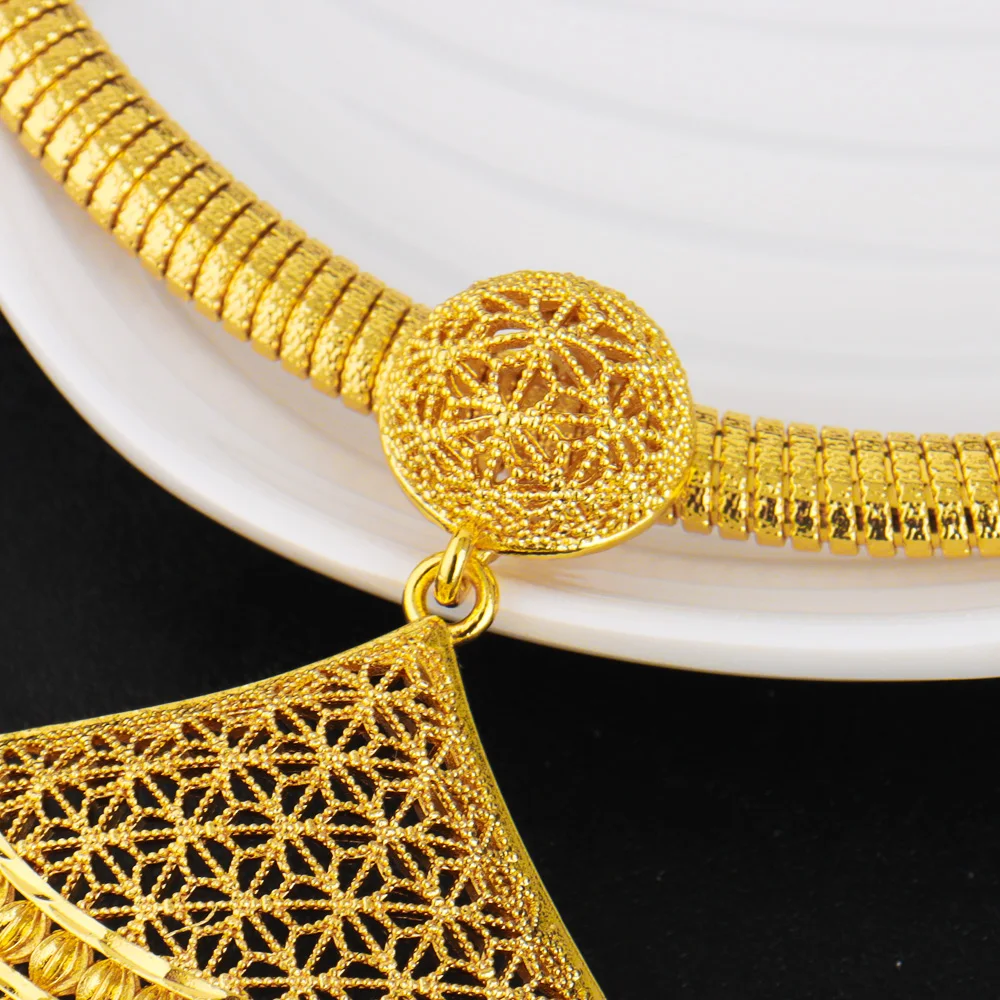 Nigerian Jewelery Set Wedding Jewelry For Women Dubai 24K Gold Color Jewlery African Designer Earrings Bridal Necklace