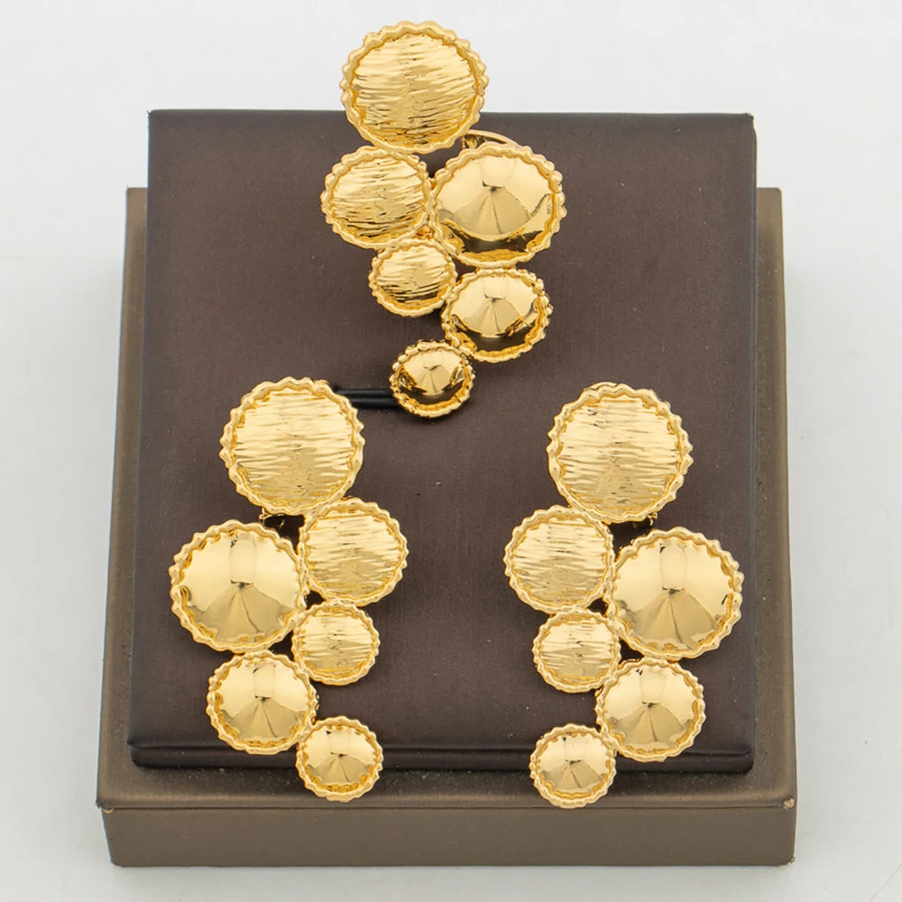 18k Gold Color Earrings and Ring Jewelry Set for Women African Design Clip Earrings Finger Ring 2Pcs Set for Engagement Party