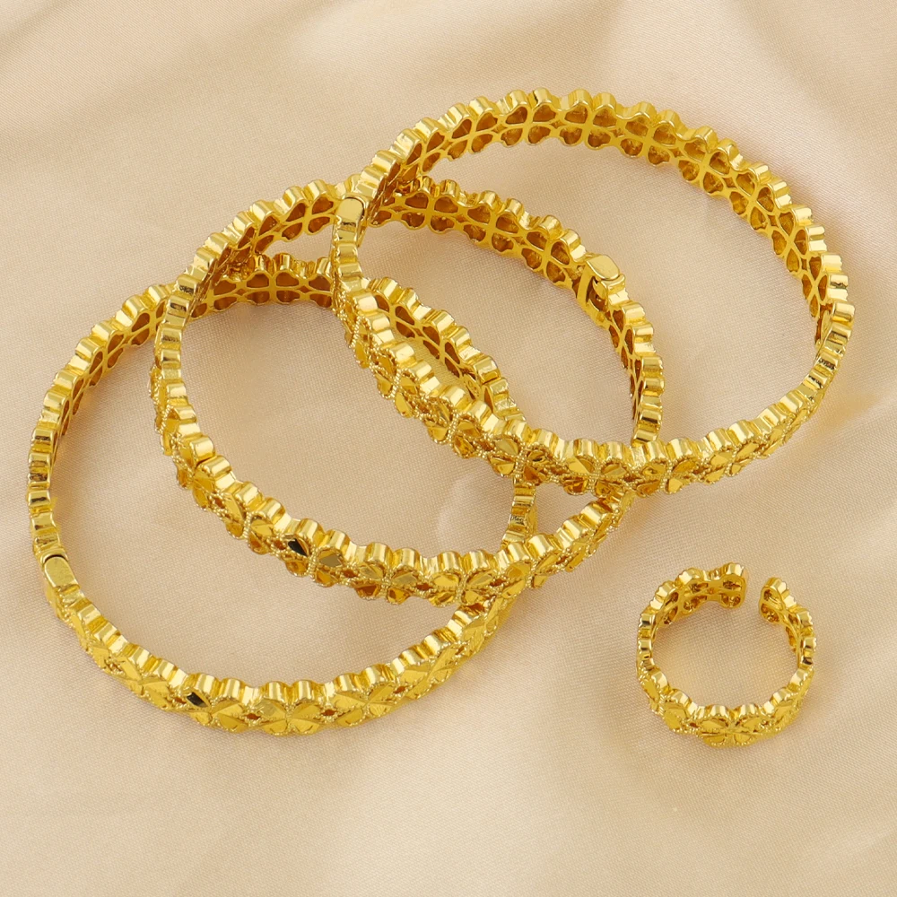 24K Gold Plated Women's bohemian Bracelet dubai flower bangle women east wedding bangles for women Gift free shipping