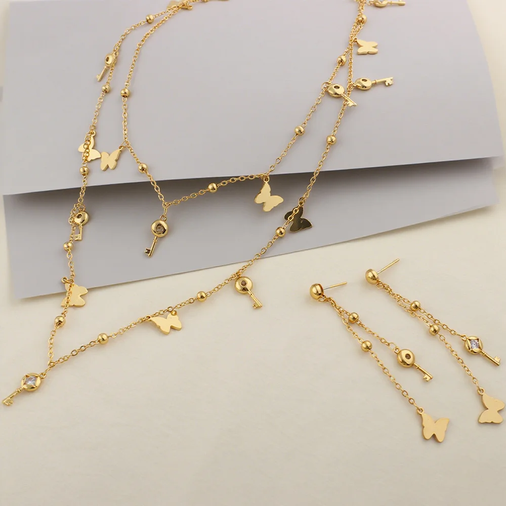 316L Stainless Steel Bohemian Butterfly Necklace Classic Many Small Ornaments Necklace for Women Beach Vacation Gift