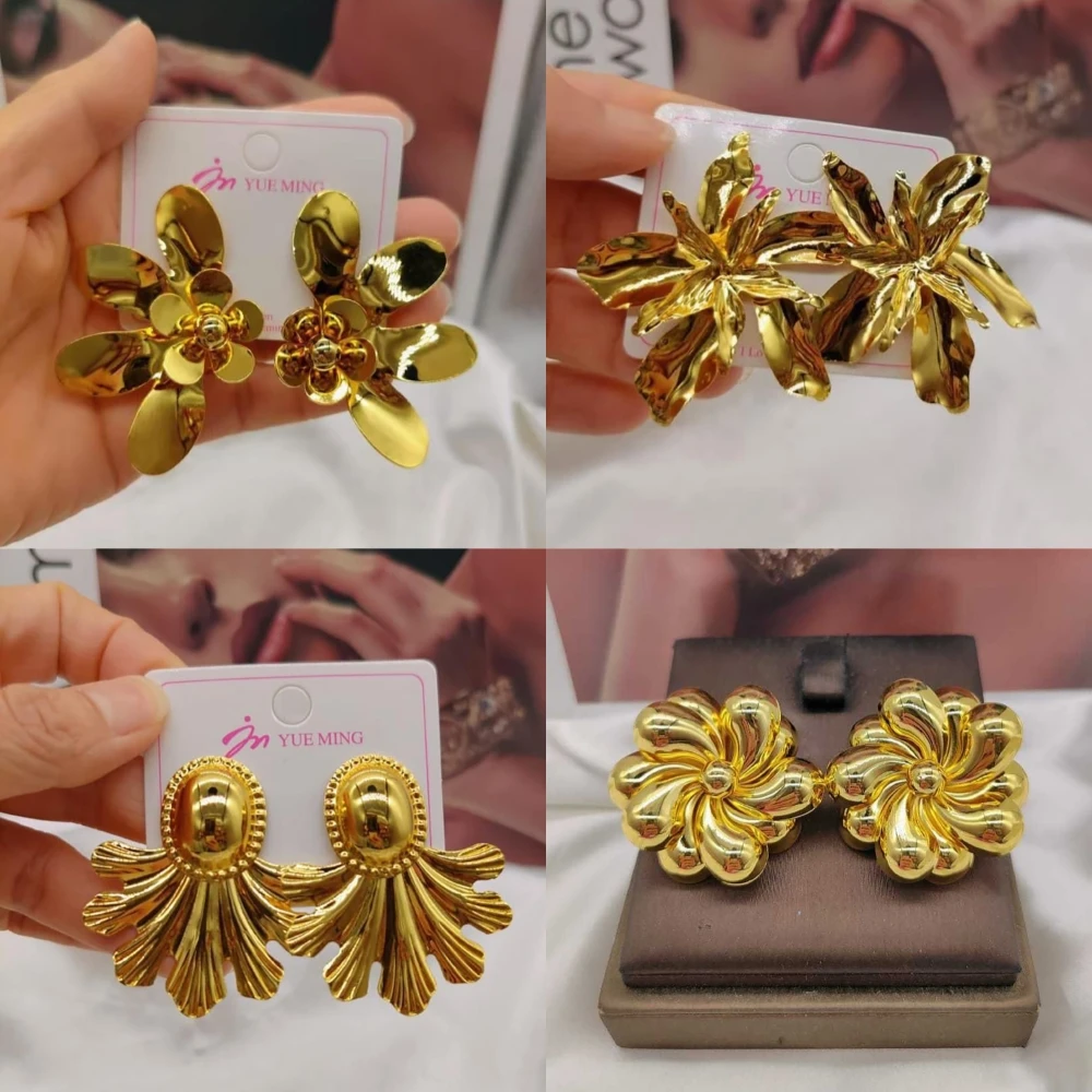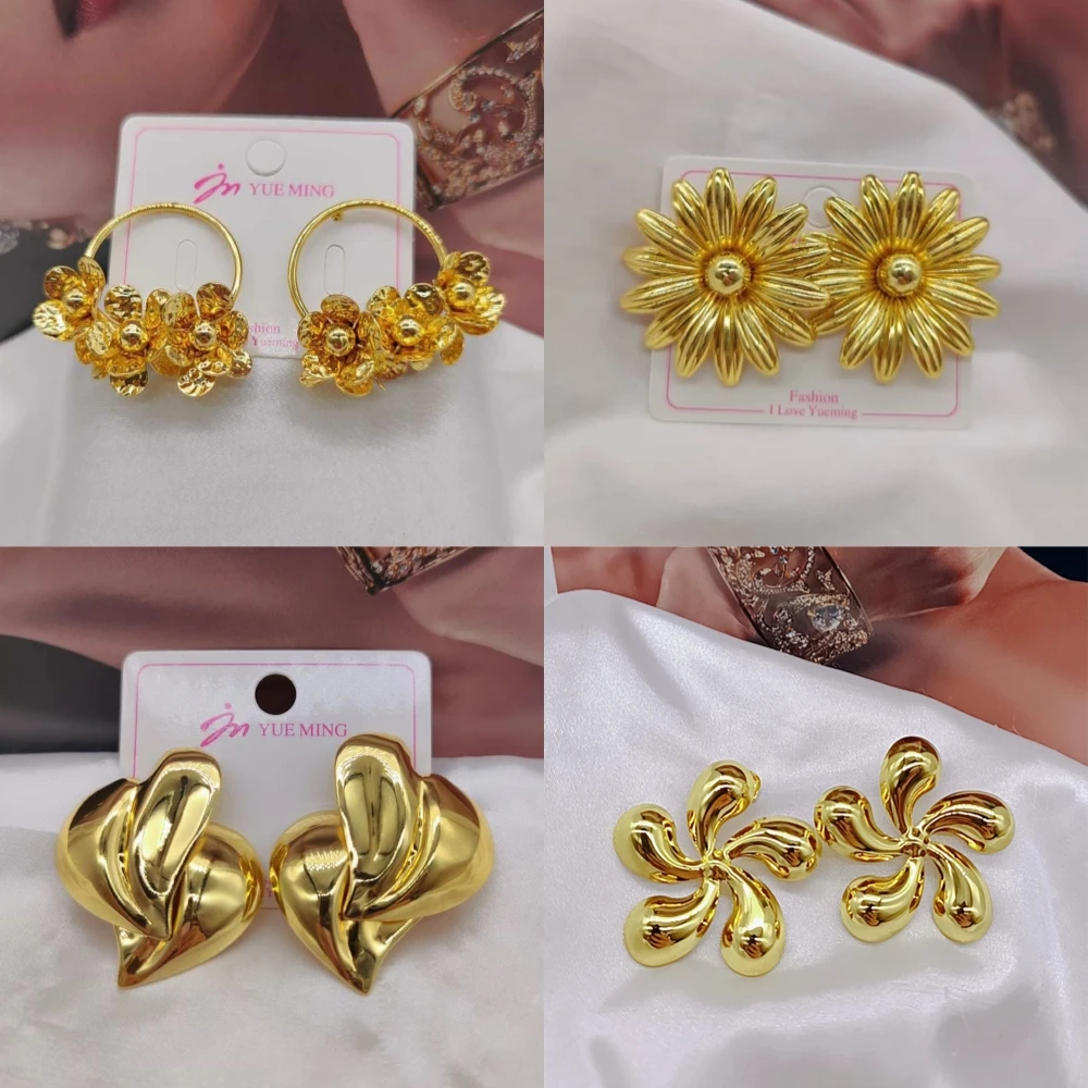 4Pairs Heart Shape Earrings for Women African Gold Color Stud Earrings Weddings Bridal Luxury Ear Accessories Party Jewelry Set
