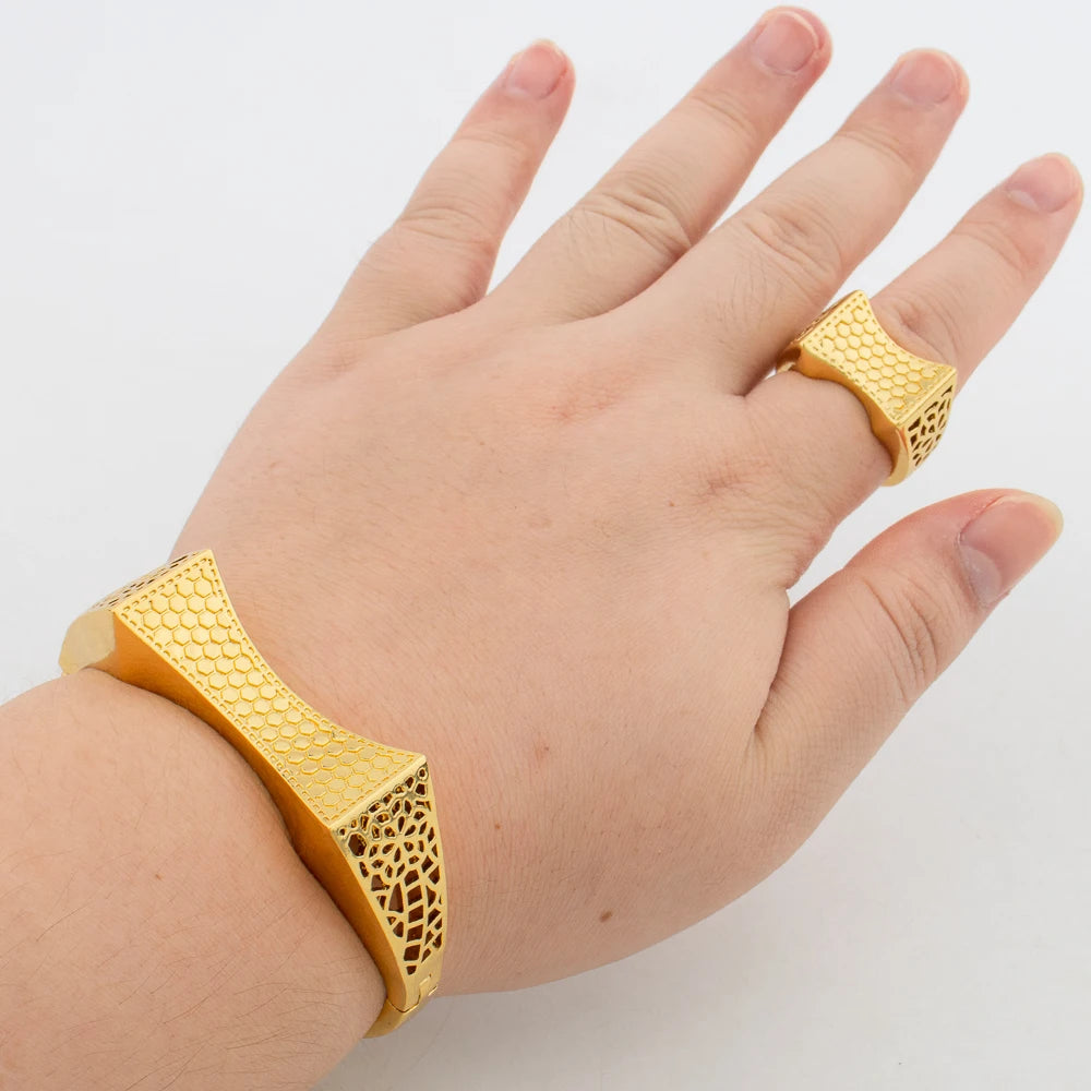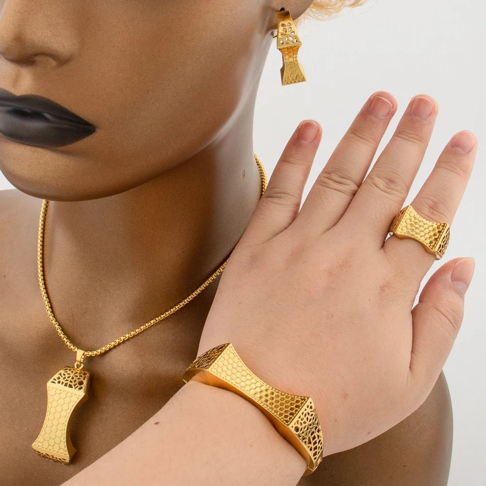 Jewelry set includes: Necklace ,Earrings,Bangles, Rings,