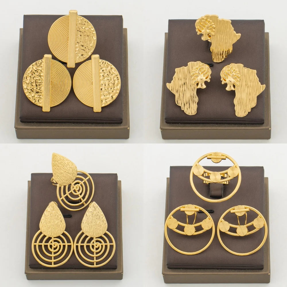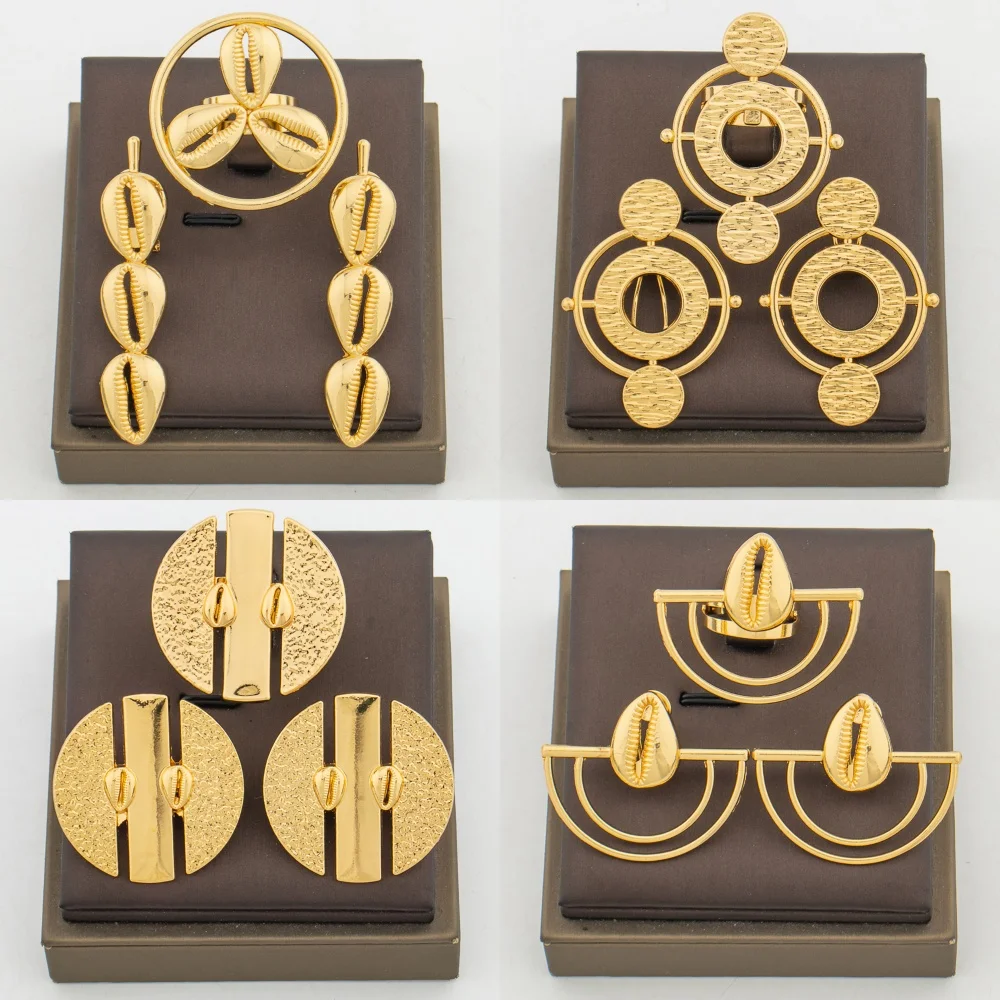 4Set/lot Earrings and Ring Jewelry Set for Party African 18k Gold Color Clip Earrings Finger Ring 2Pcs Set for Engagement Gifts