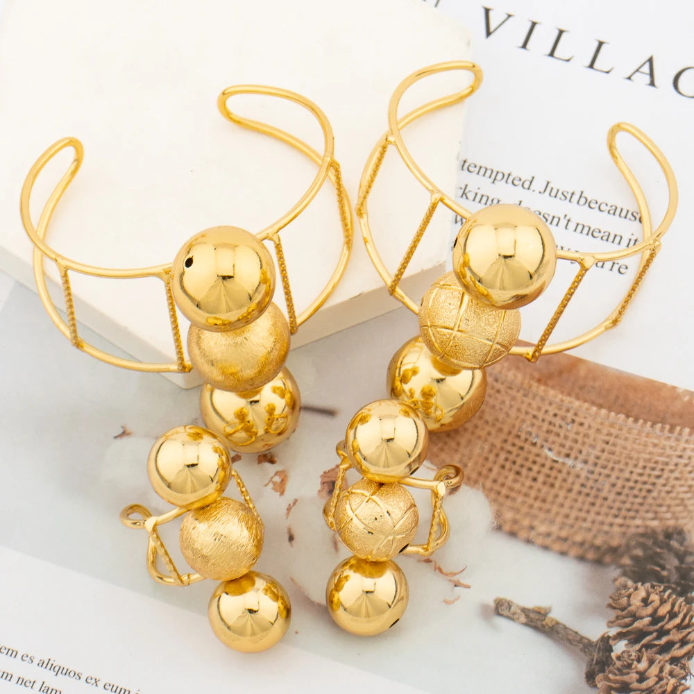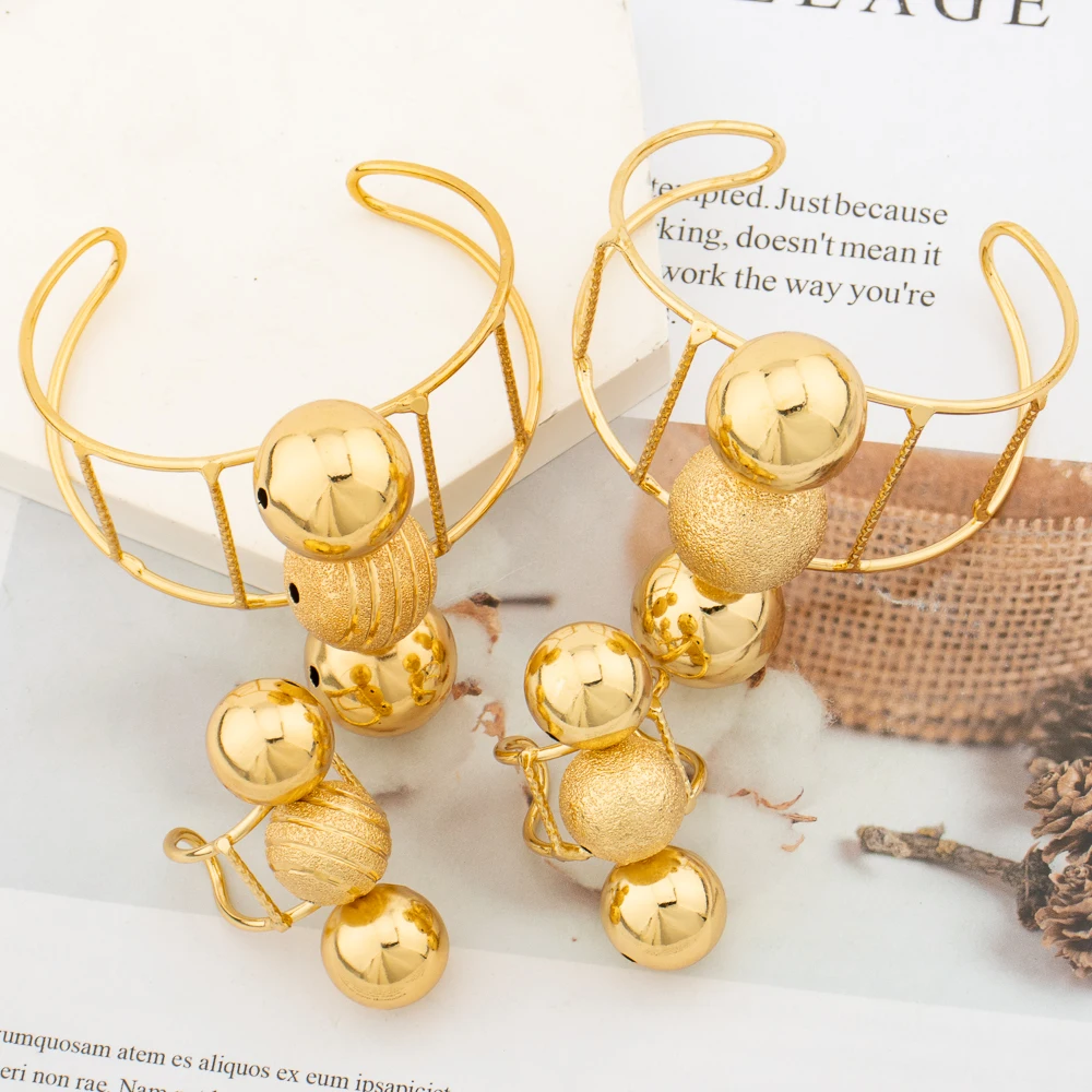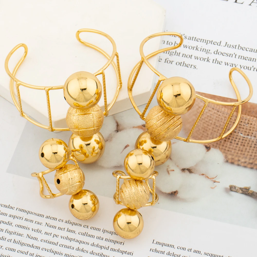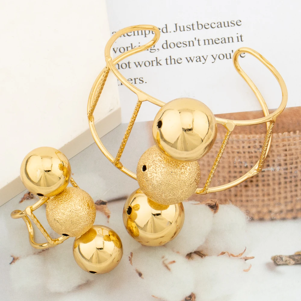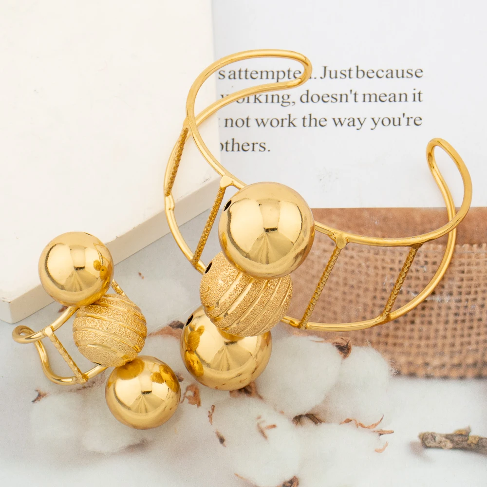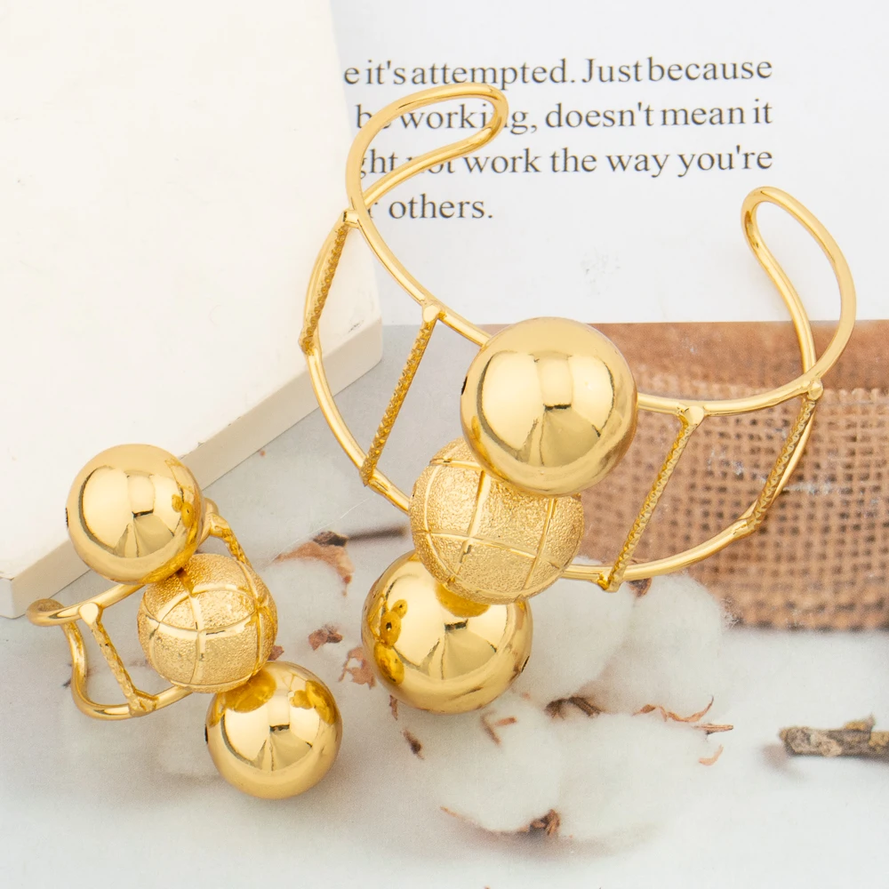 4Sets/lot Bangle with Ring African Jewelry for Weddings Dubai 18k Gold Color Cuff Bracelet and Finger Ring 2Pcs Set for Weddings
