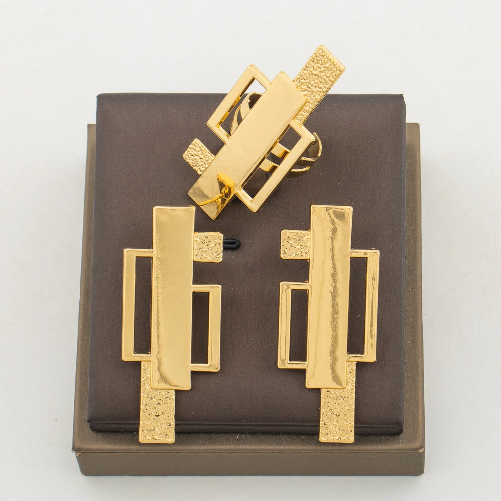 African Gold Color Jewelry Set for Party New Design Clip Earrings and Finger Ring 2Pcs Set for Weddings Engagement Party Jewelry