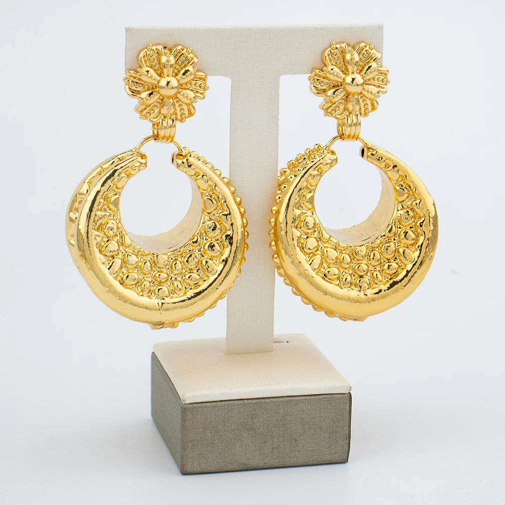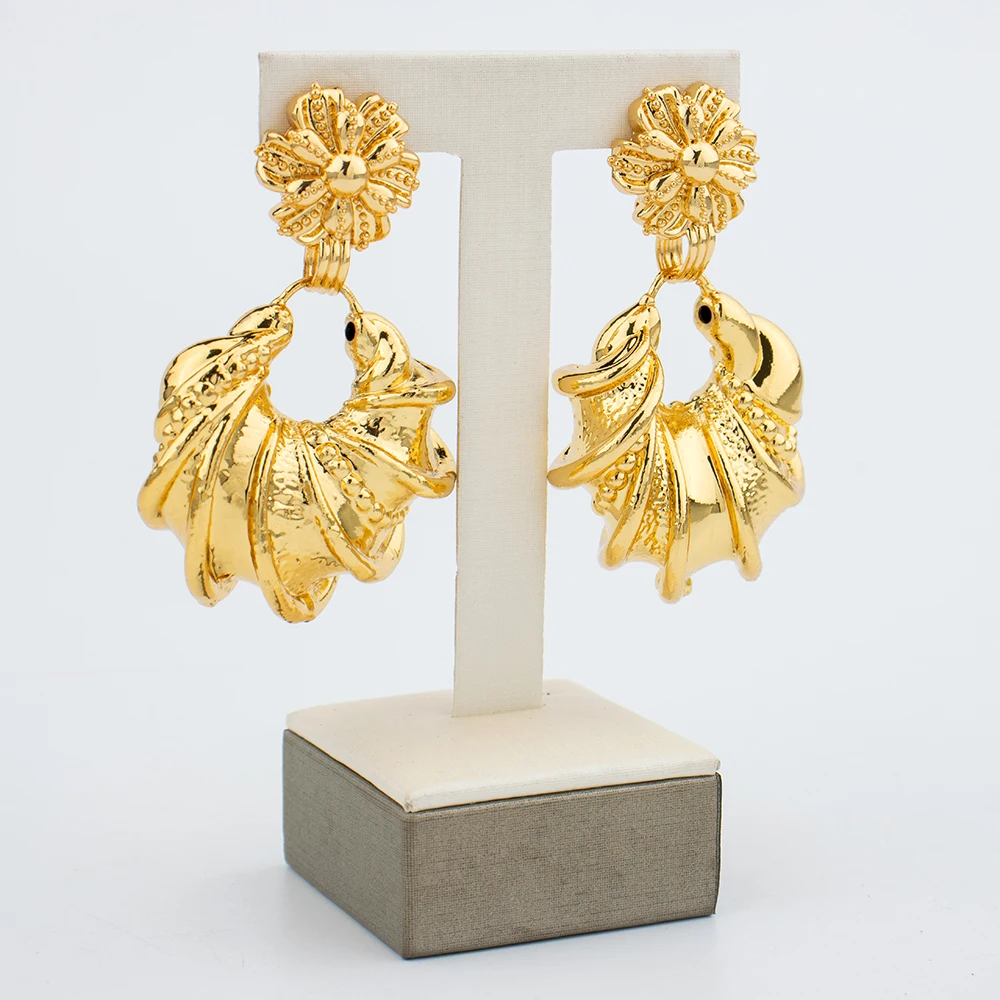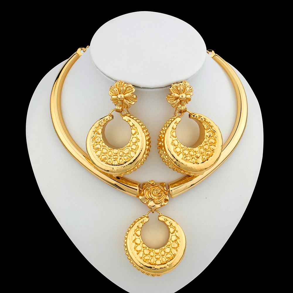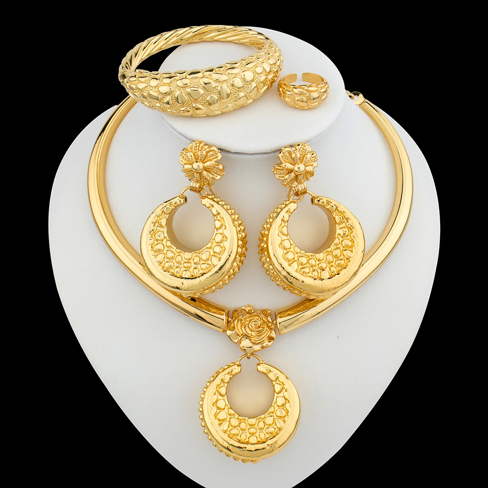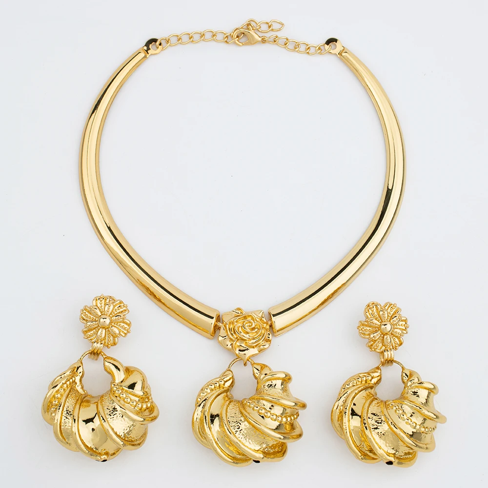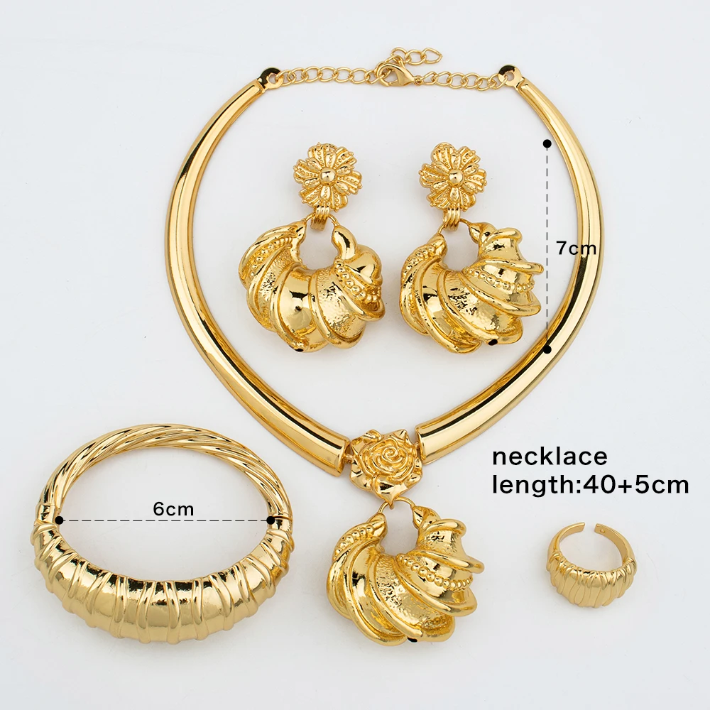 African Gold Plated Jewelry Set Unusual Pendant Necklace and Earrings Bridal Accessories Women Brazilian Party Bracelet Jewelry