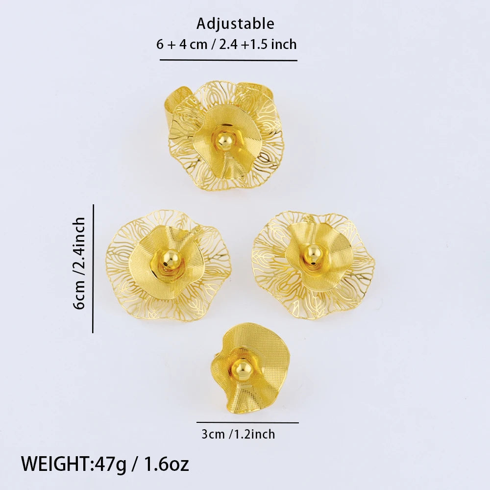 Indian Gold Plated Flower Jewelry Set for Women Bridal Dubai Costume Stainless Steel Necklace Earrings Set For Wedding Party Gif