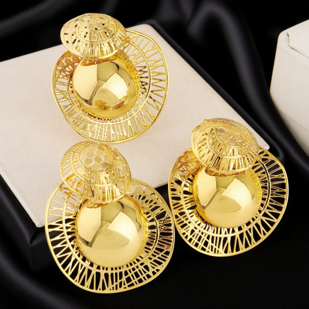 Big Size Earrings And Ring Set 18K Gold Plated Earrings for Women Simple Fashion Jewelry Hot Sale Party Gift 2025 New Style