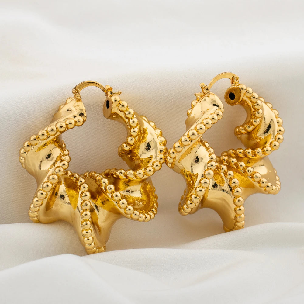 Bold Earrings for Women 18K Gold Color Smooth Oval Earrings 2024 Exaggerated Hollow Geometric Ear Buckle Jewelry Birthday Gifts