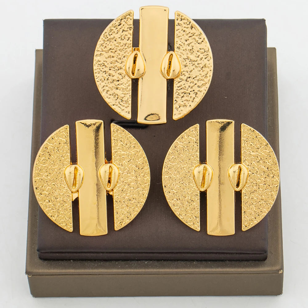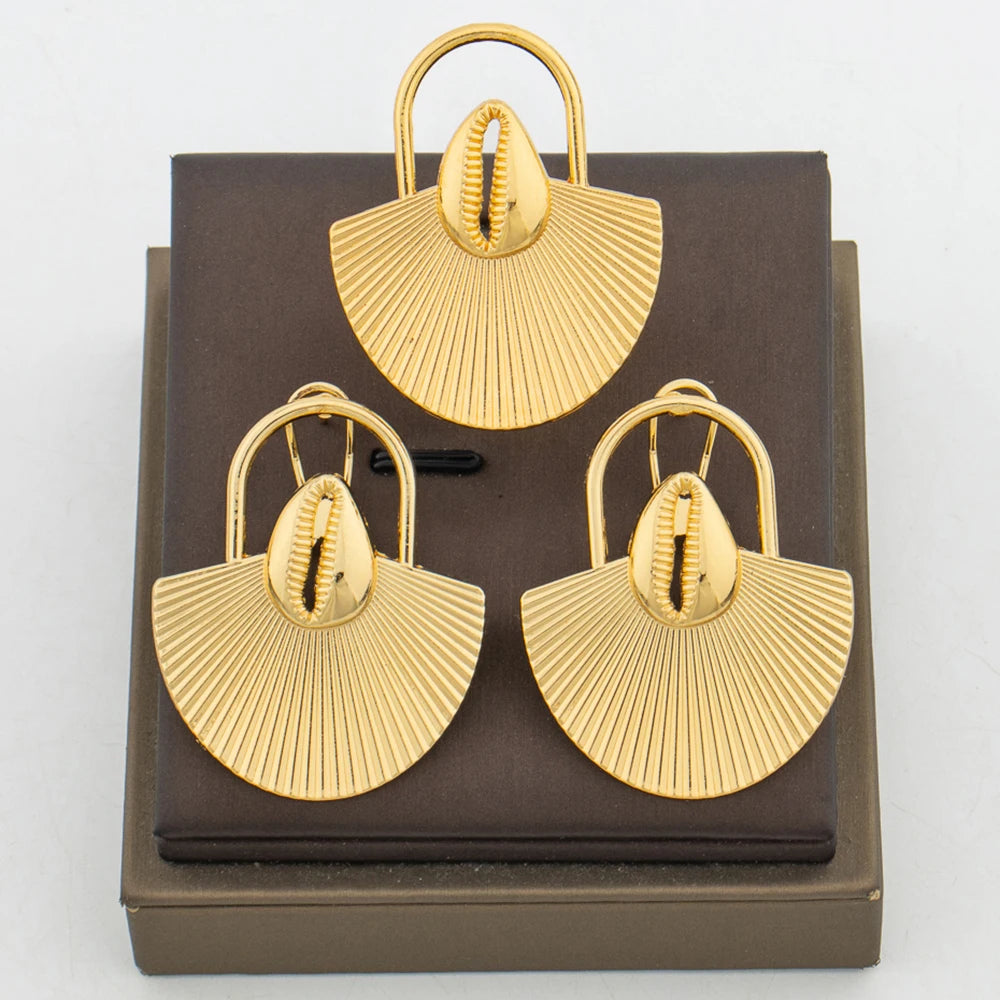 Brazilian Gold Color Earrings with Ring Jewelry Set for Party Hollow Out Design Big Earrings Finger Ring 2Pcs Set for Engagement