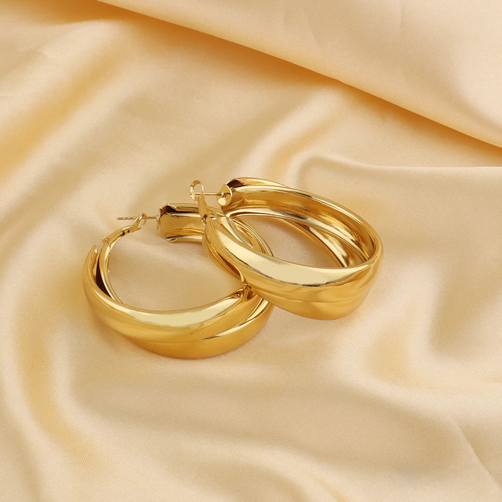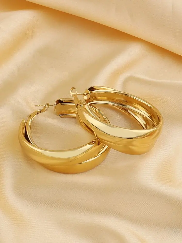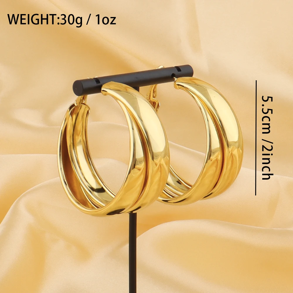Charms Glossy Double Ear Buckle Gold Color Earrings for Women free shipping halloween Hoop Earrings Fine Jewelry Accessories
