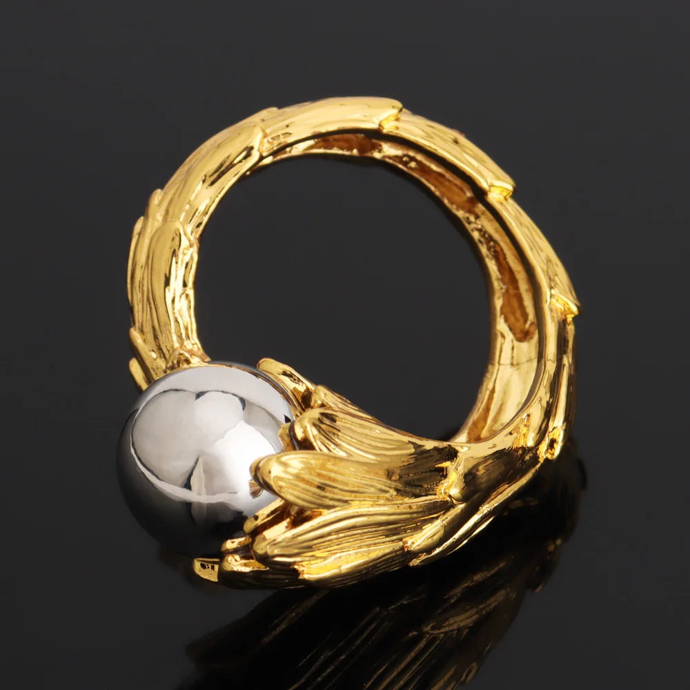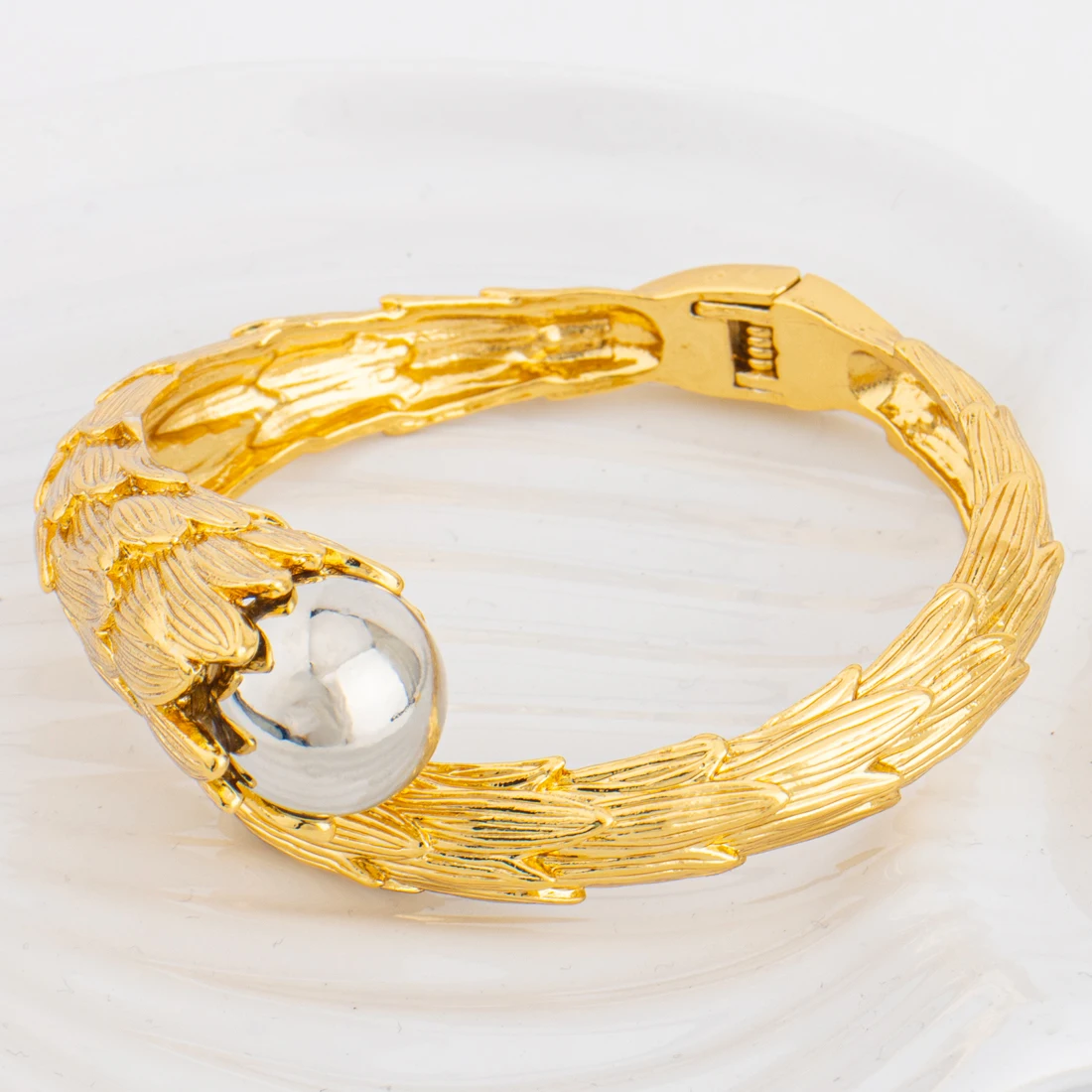 Cuff Bangle With Ring Luxury Gold Plated Bracelet Jewelry Nigerian Wedding Party Gift Dubai Hollow Out Design Bracelet