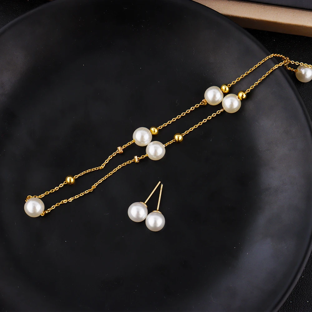 Dainty Luxury Stainless Steel Imitation Pearl Necklace for Women Summer Beach Accessories for daily and party wear