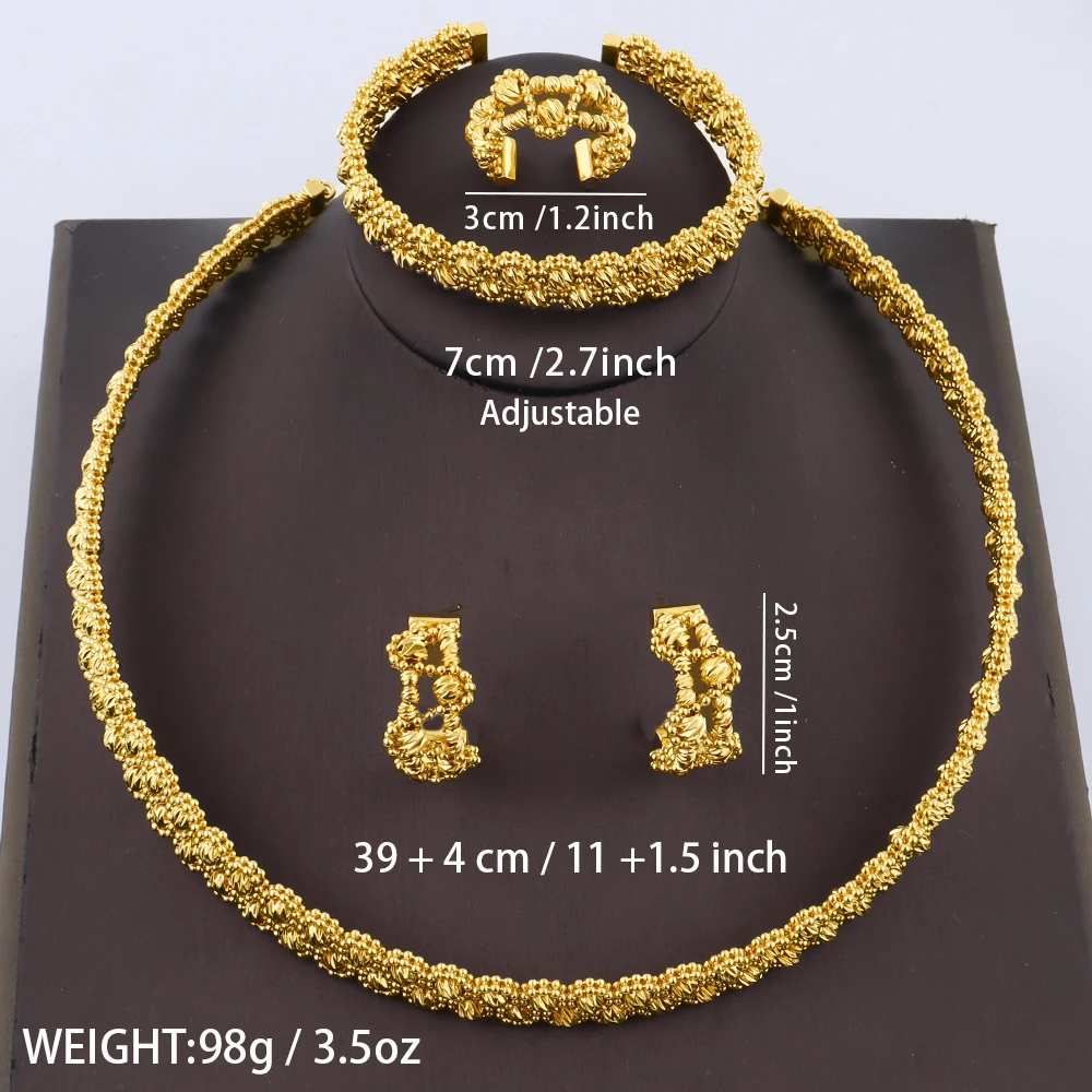 Dubai 18K Gold Plated Necklace Bracelet Ring Earrings Set for Women Charms Jewelry Set for Women Elegant Gift for Party Wedding