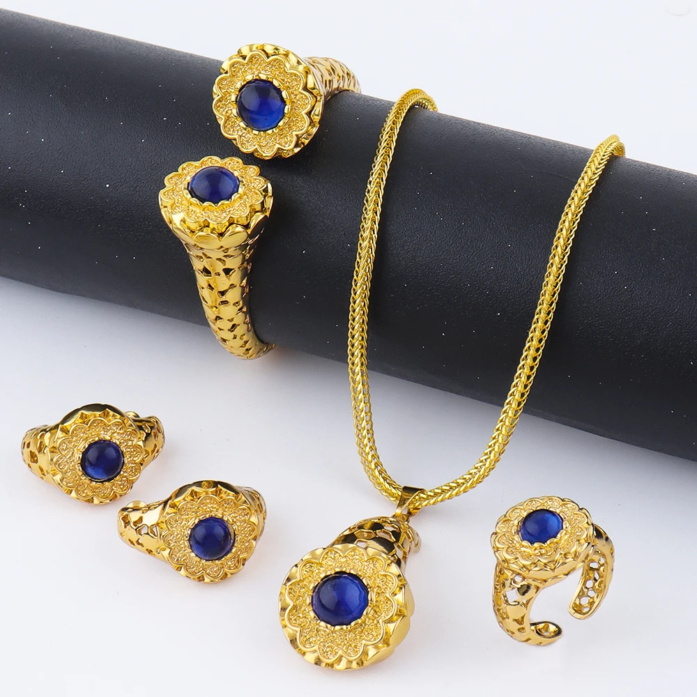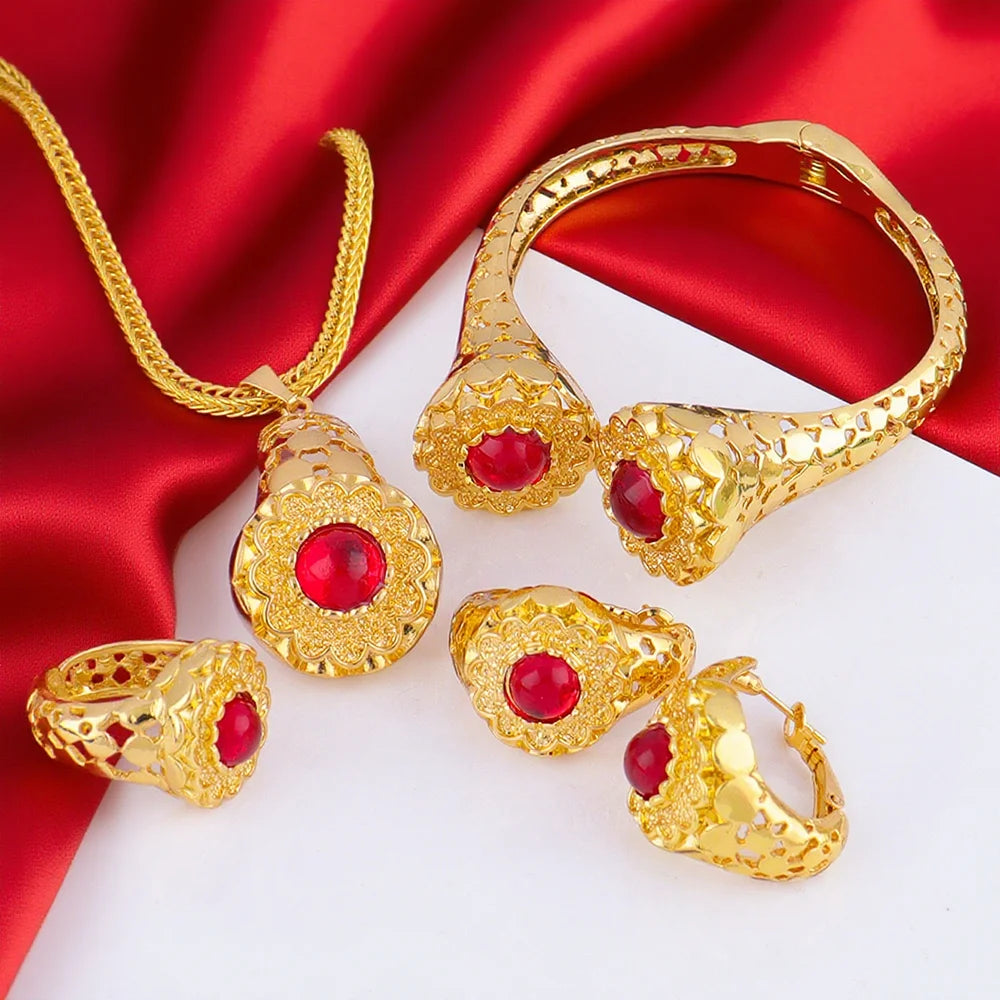 Dubai 24k Gold Plated Jewelry Sets for Indian Bridal Costume Necklace Earrings Bracelet Ring Sets Nigerian Wedding Party Gifts