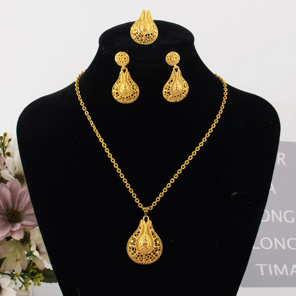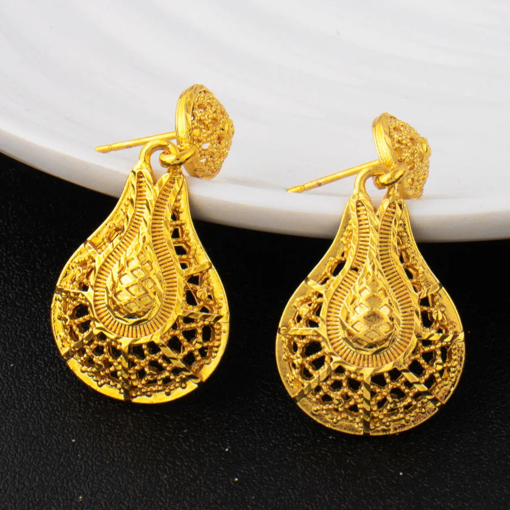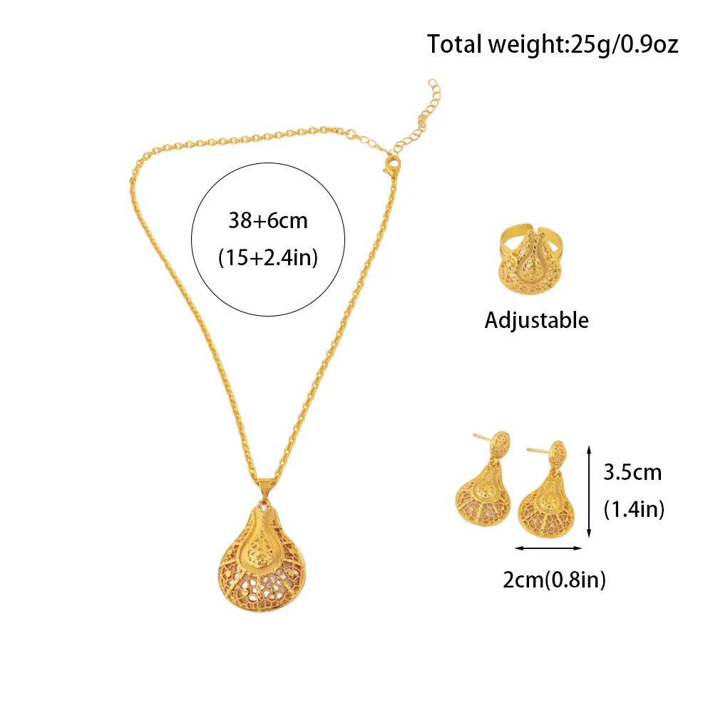 Dubai Bridal Gold Jewelry Set for Women, Middle-East Costume Necklace Earrings, Indian Wedding Party Gift, Luxe Statement Bridal