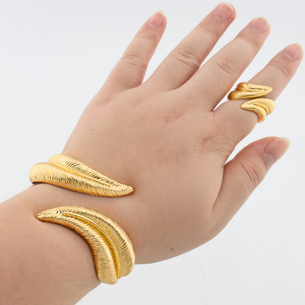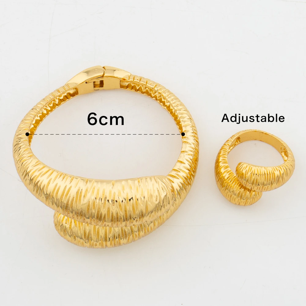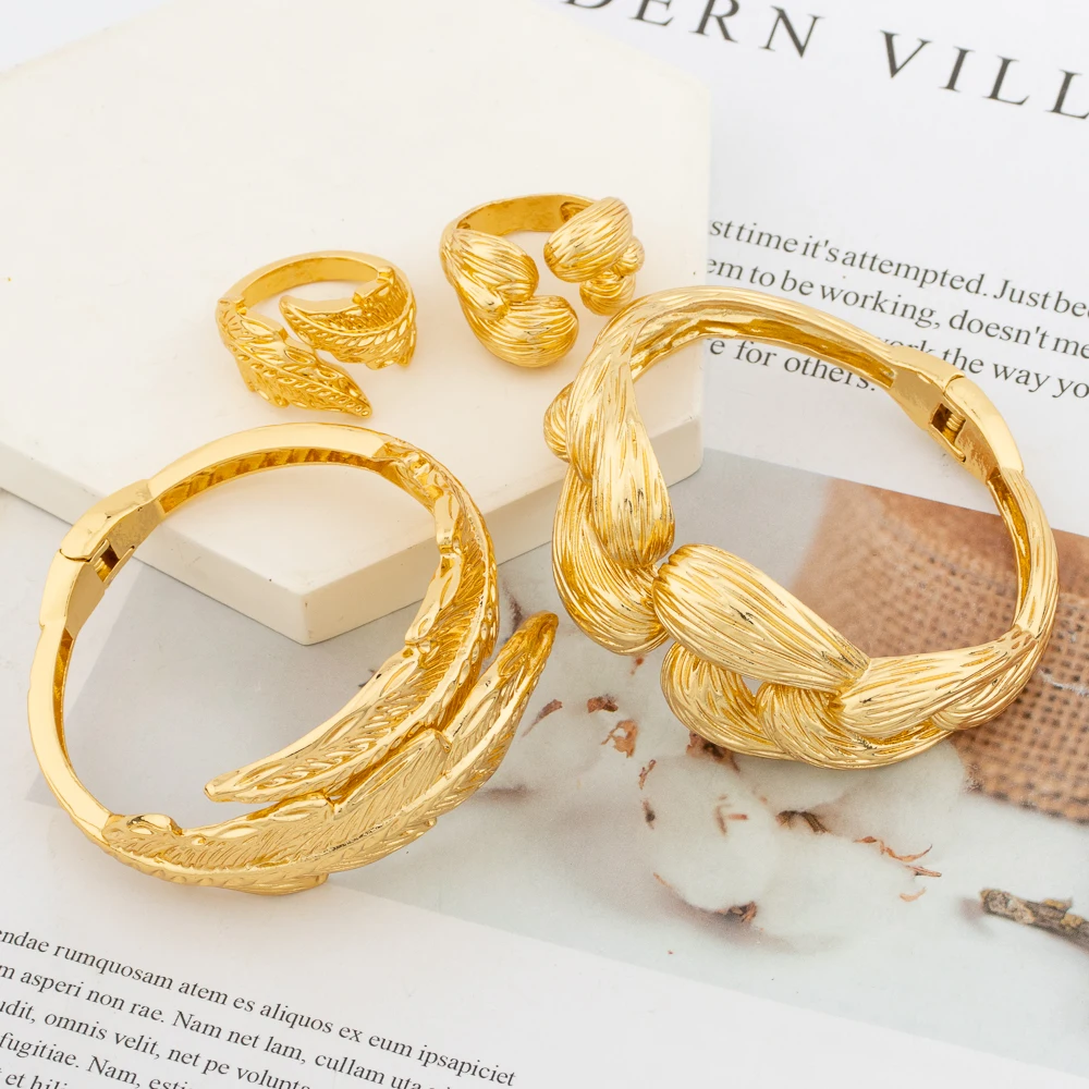 Dubai Design Bangle with Ring Jewelry Set for Women Weddings Party Hand Bangle and Adjustable Ring 2Pcs Set for Anniversary