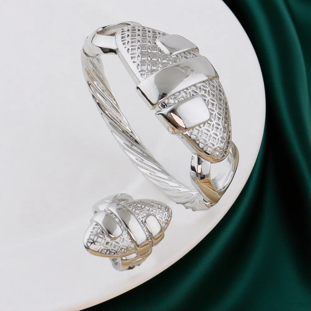 Dubai Gold Color Arab bracelets Rings 18K gold plated fashion unique design jewelry For Women Wedding Jewelry Gift