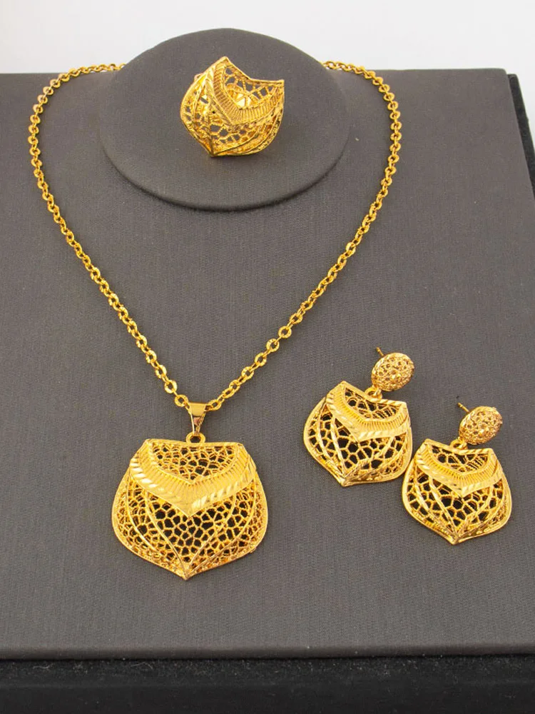 Dubai Gold-Plated Bridal Jewelry Set for Women – Indian Costume Necklace Earrings, Nigerian Wedding Party Gift, Luxury Statemen