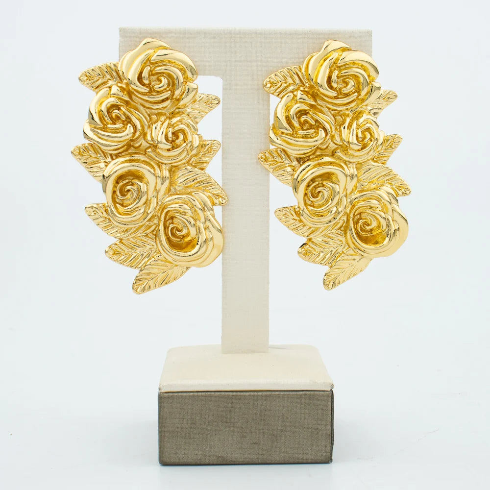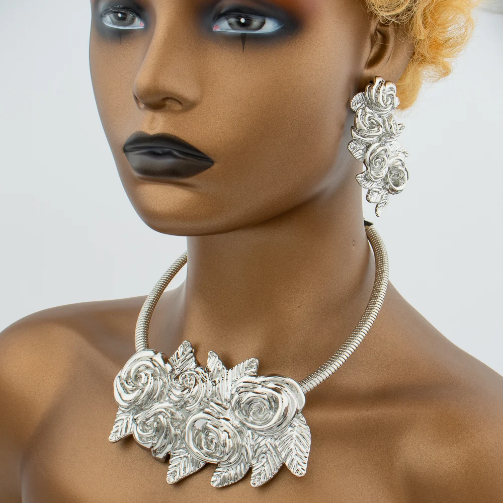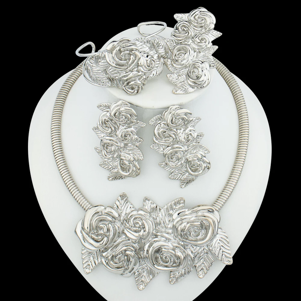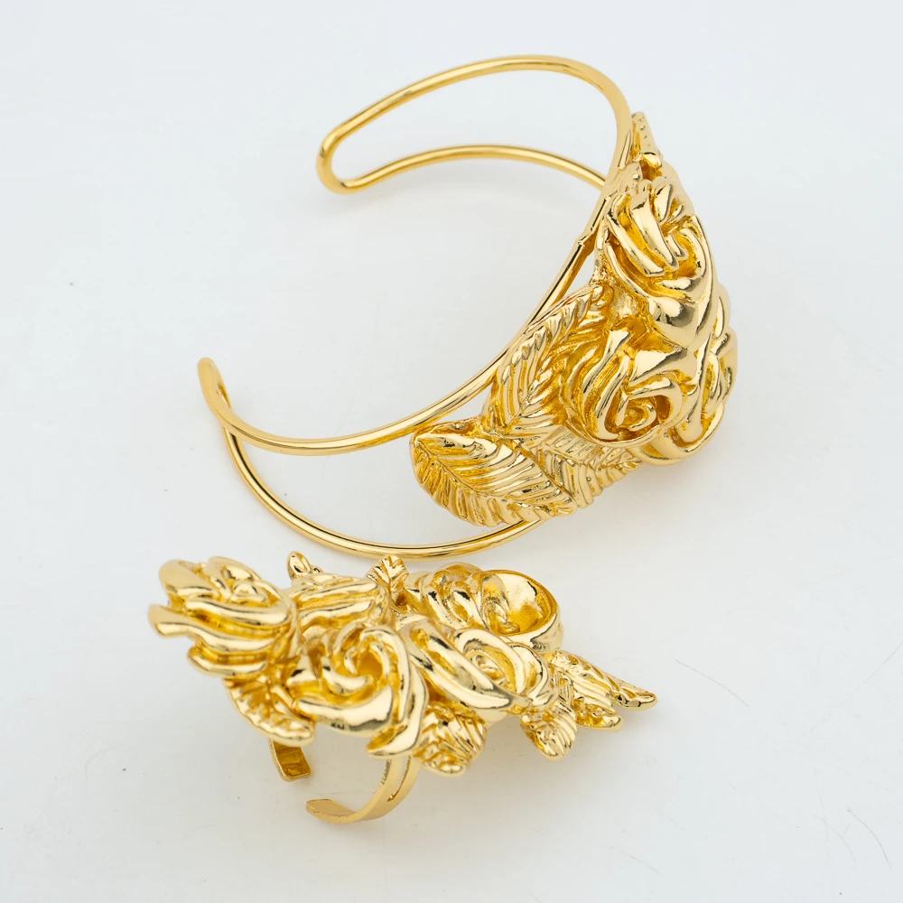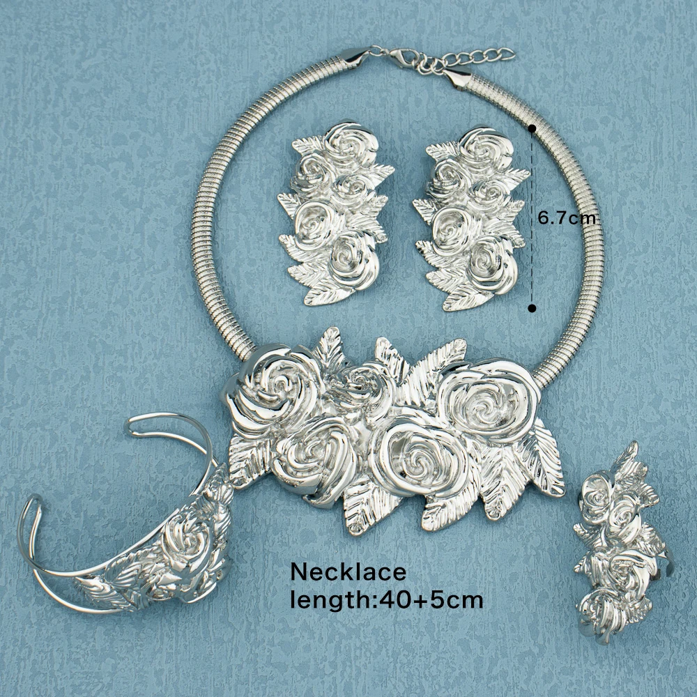 Dubai Gold Plated Jewelry Set Exaggerate Rose Pendant and Earrings Large Necklace Weddings Bridal Jewelry Set Gifts for Women