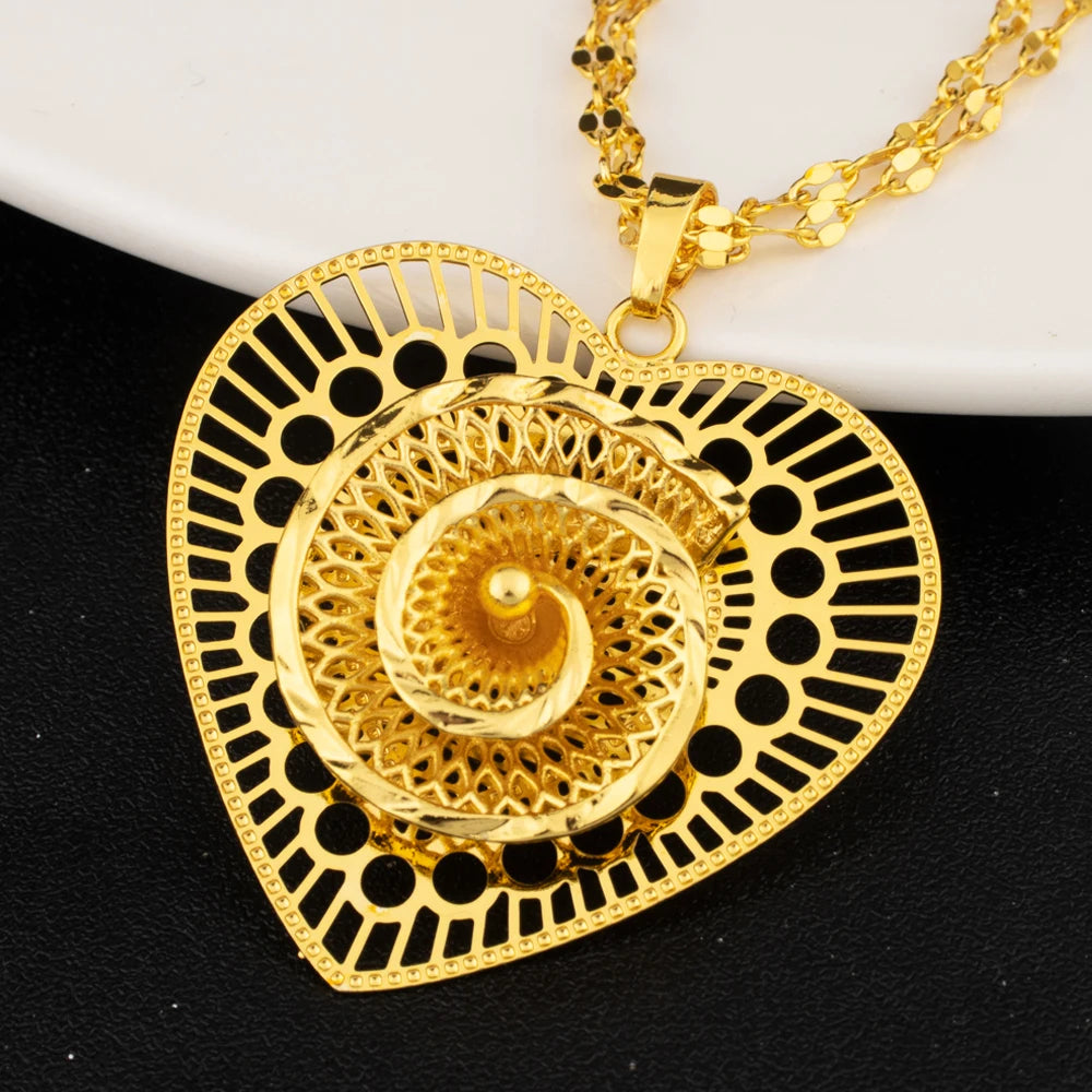 Dubai Luxe Gold-Tone African Bridal Jewelry Set with Necklace Drop Earrings And Ring Chic Middle East Party Accessory for Her