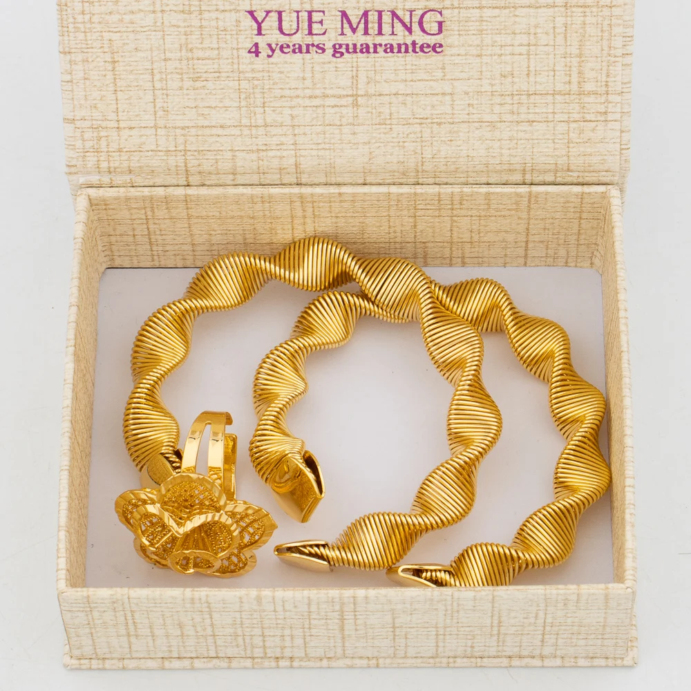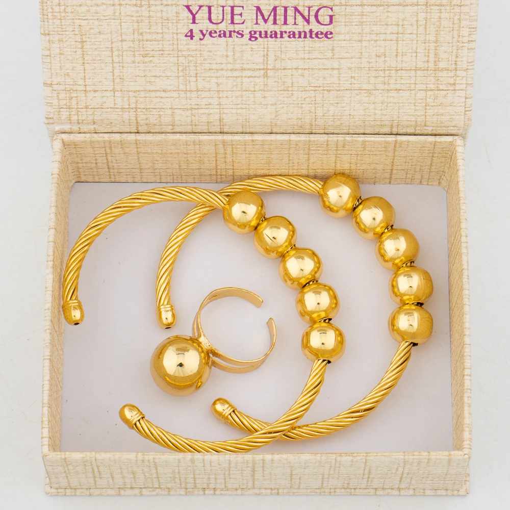 Dubai Trend Jewelry Set for Women Gold Color Cuff Bangle with Ring New Design Beads Bracelet Weddings Bridal Jewelry Accessories