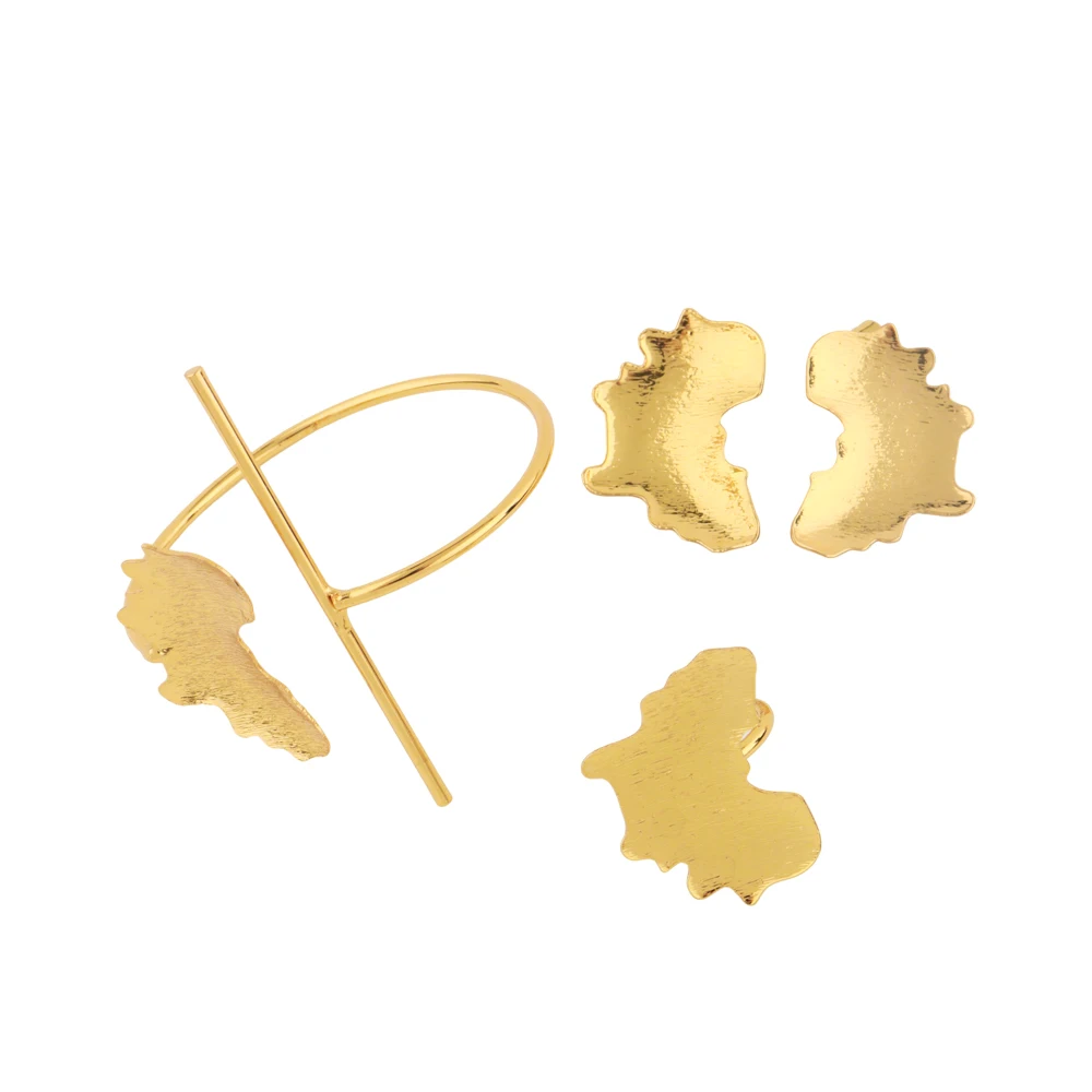 Elegant African Gold-Tone Bridal Wedding Gift Jewelry Set for Women Clip Earrings Cuff & Ring