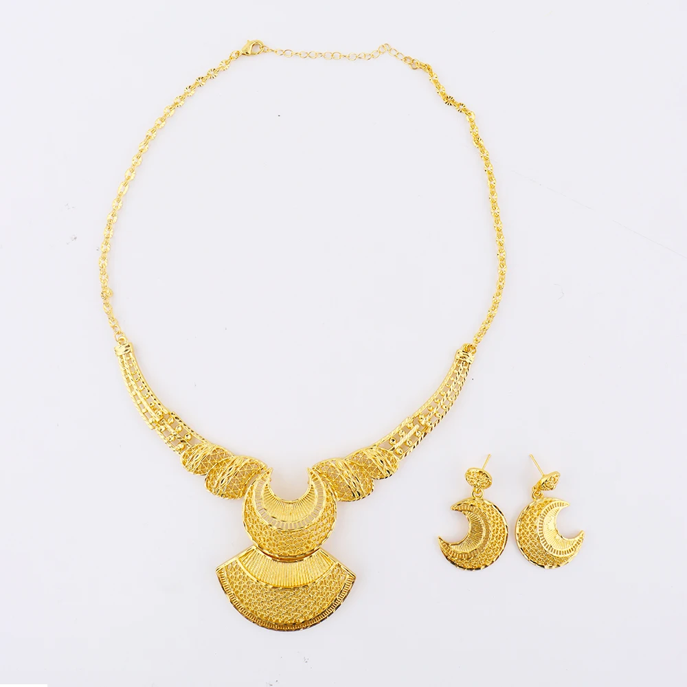 Elegant Gold-Tone Necklace & Drop Earring Set for Women, Dubai Bridal Wedding Jewelry, African Luxury Party Gift Accessory