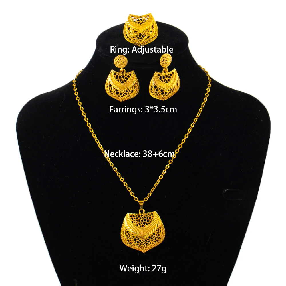 ethiopian jewelry set gold Special design Necklace and earrings Rings set for women high quality plated jewelry sets gifts