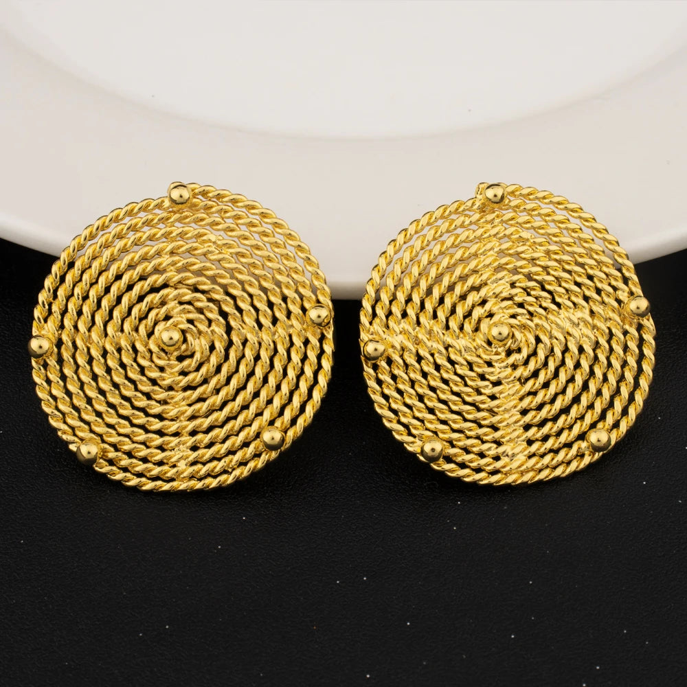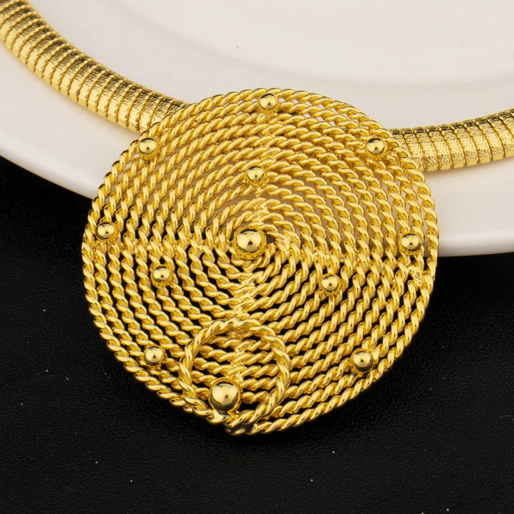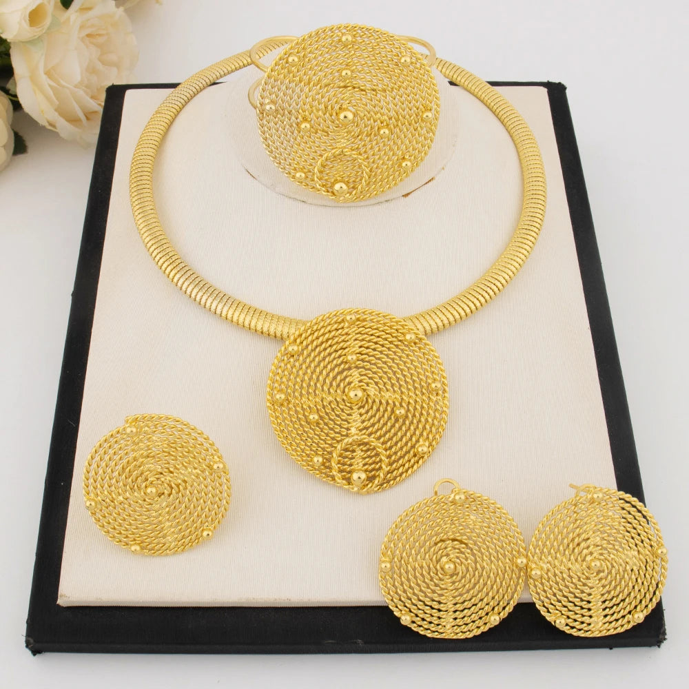 Exaggerated Gold Color Round Earrings Necklace America Larger Bangle Ring for Women Jewelry Set For Party Dressing Big promotion