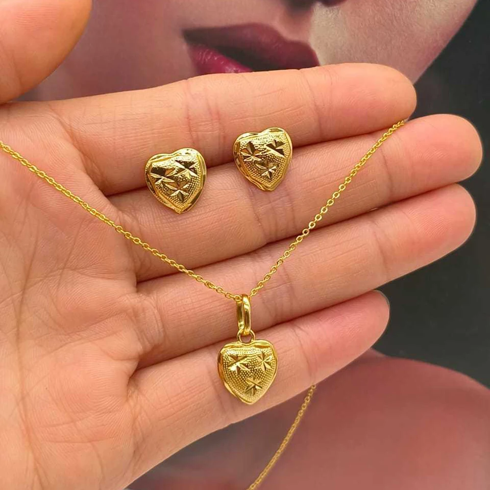 Exquisite Gold Color Jewelry Set for Party Stud Earrings and Pendant Necklace African Bridal Jewelry Set for Engagement Party