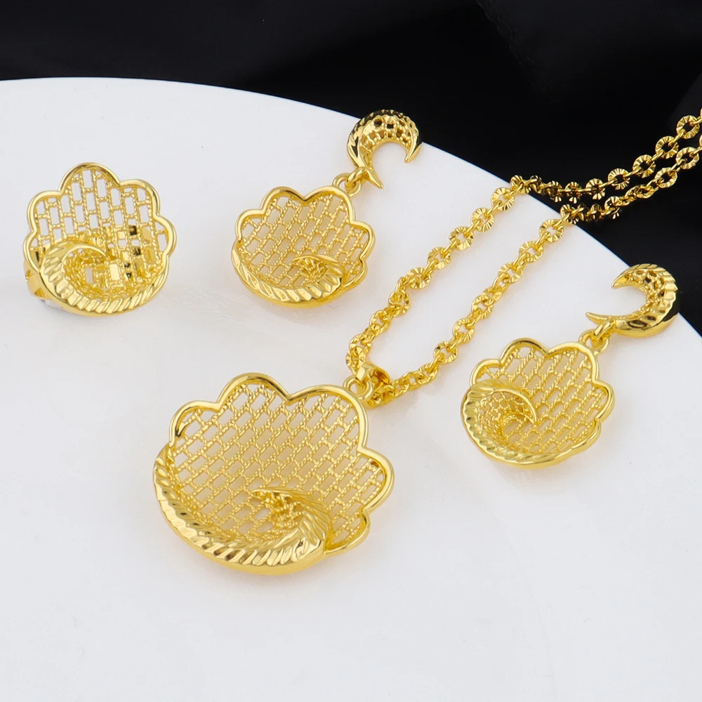 Fashion 24K Gold Color Flower Pendant Necklaces High Quality Luxury Jewelry for Dubai India Africa Women Party Gift