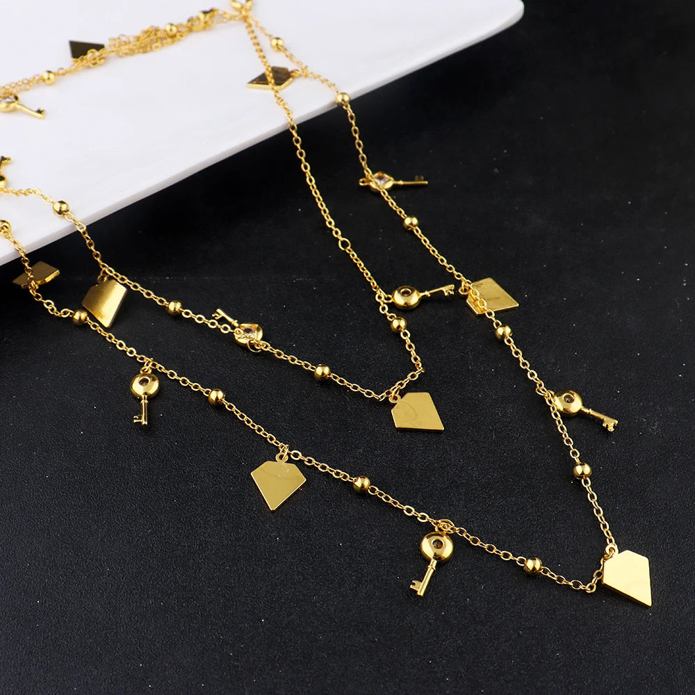 Fashion Classic Gold Plated Long Necklace Chain Earrings Set for Women Girl Dubai Shine Jewelry Gift for Party Wedding Bride