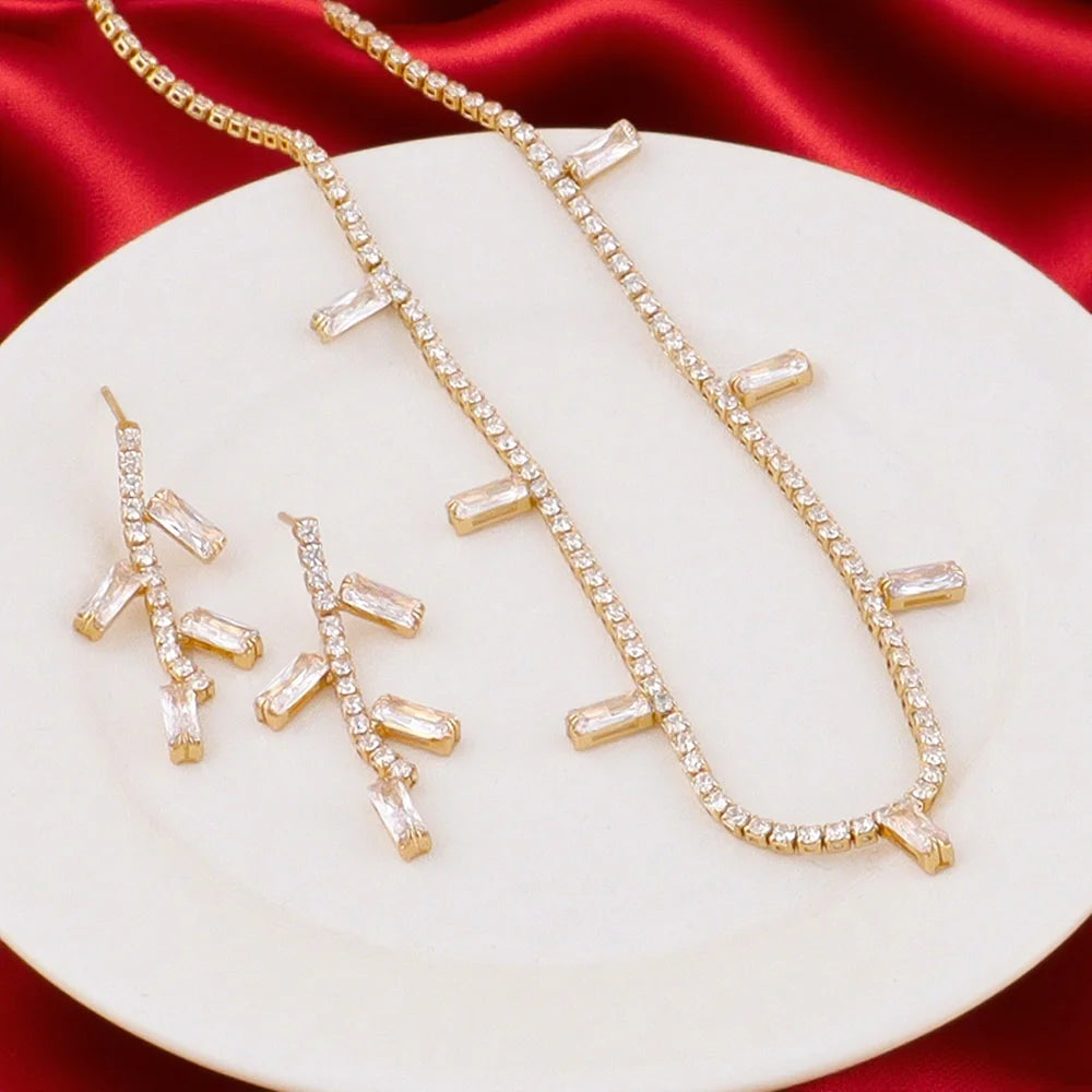 Fashion Colorful Cubic Zirconia Stainless Steel Necklace For Women 18K Gold Plated Fashion Waterproof Jewelry Gifts
