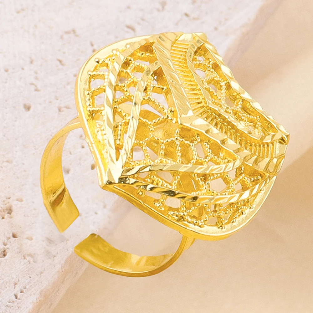 Fashion Dubai Jewelry Sets Gold Color Pendant Earrings Necklace Rings For Women Daily Wear Party Anniversary Gifts