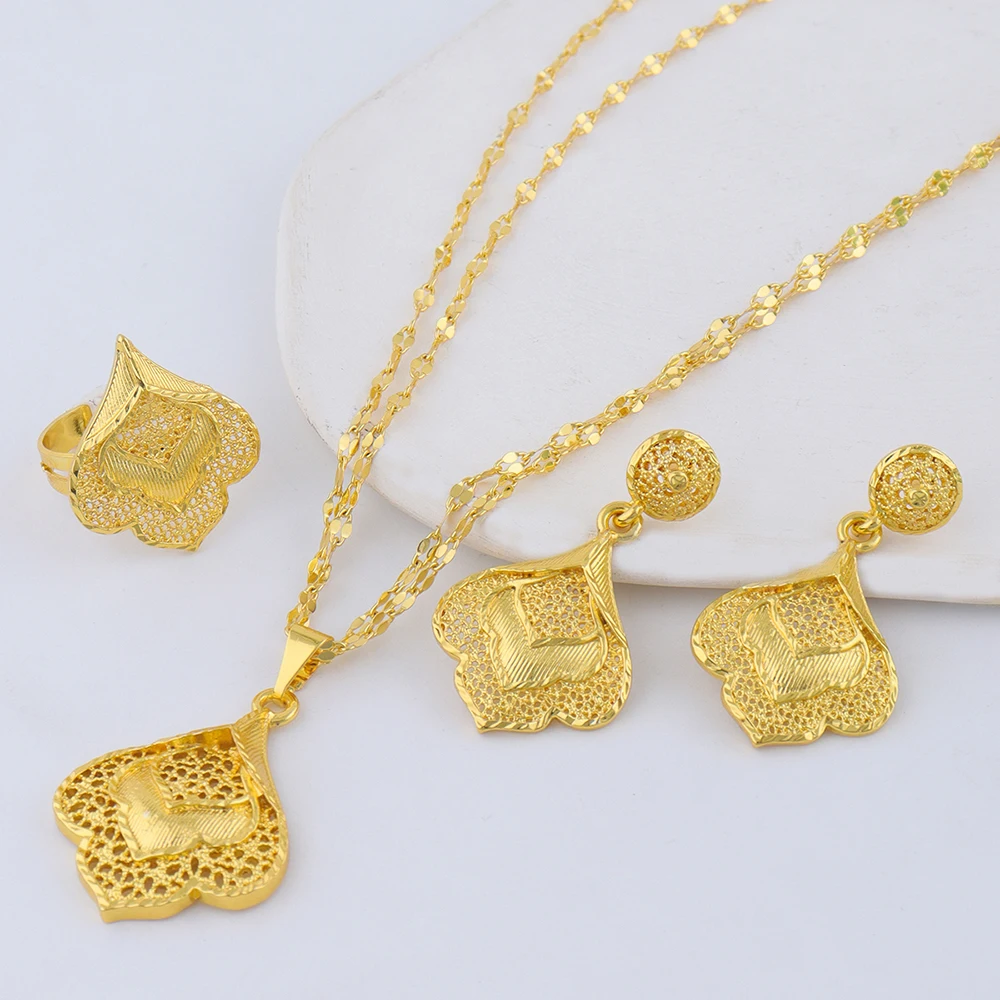 Fashion Gold Color Jewelry For Women Necklace Pendant Earrings Rings Wedding Nigeria France Jewelry Set Party Gifts
