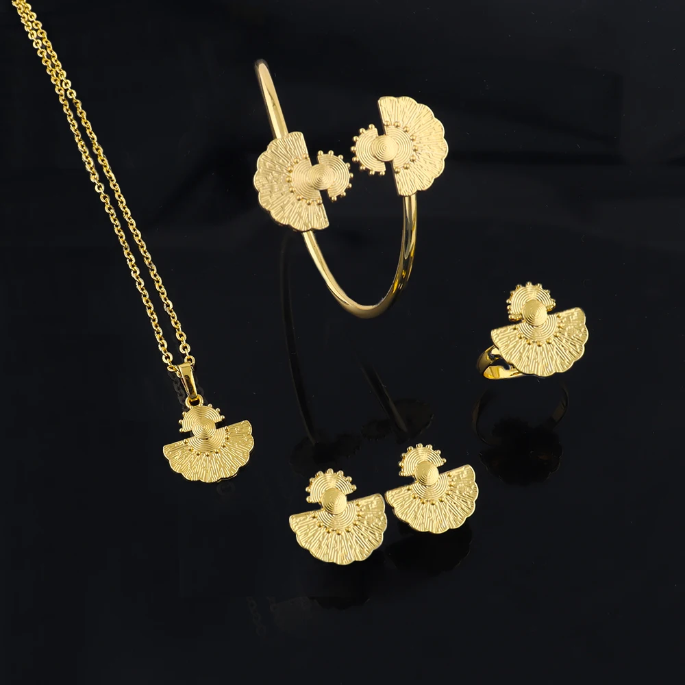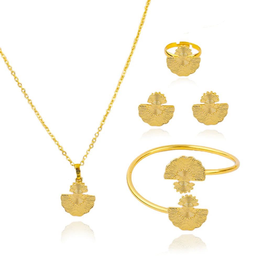 Fashion Gold Plated Necklace Bracelet Earrings Ring Jewelry Set for Women Baby Elegant Jewelry Sets for Wedding Party Gift