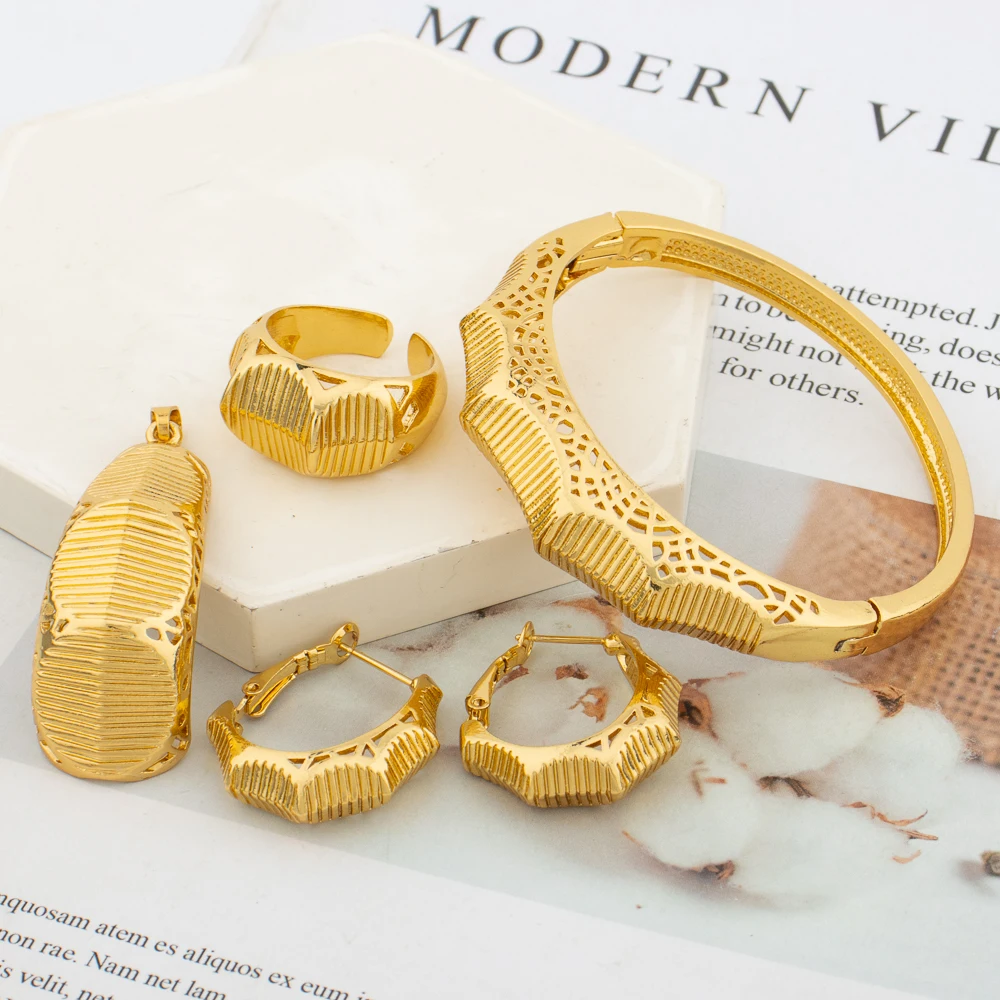 Fashion Jewelry Set for Women 18k Gold Plated Necklace and Earrings with Bracelet Ring Set for Weddings Party Jewelry Set Gifts