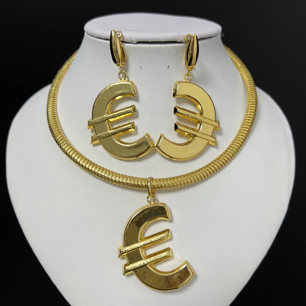 Earrings and Pendant Set For Women Necklace Fashion Jewelry Sets Trend Statement Gold Color Necklace Wedding Party Gift