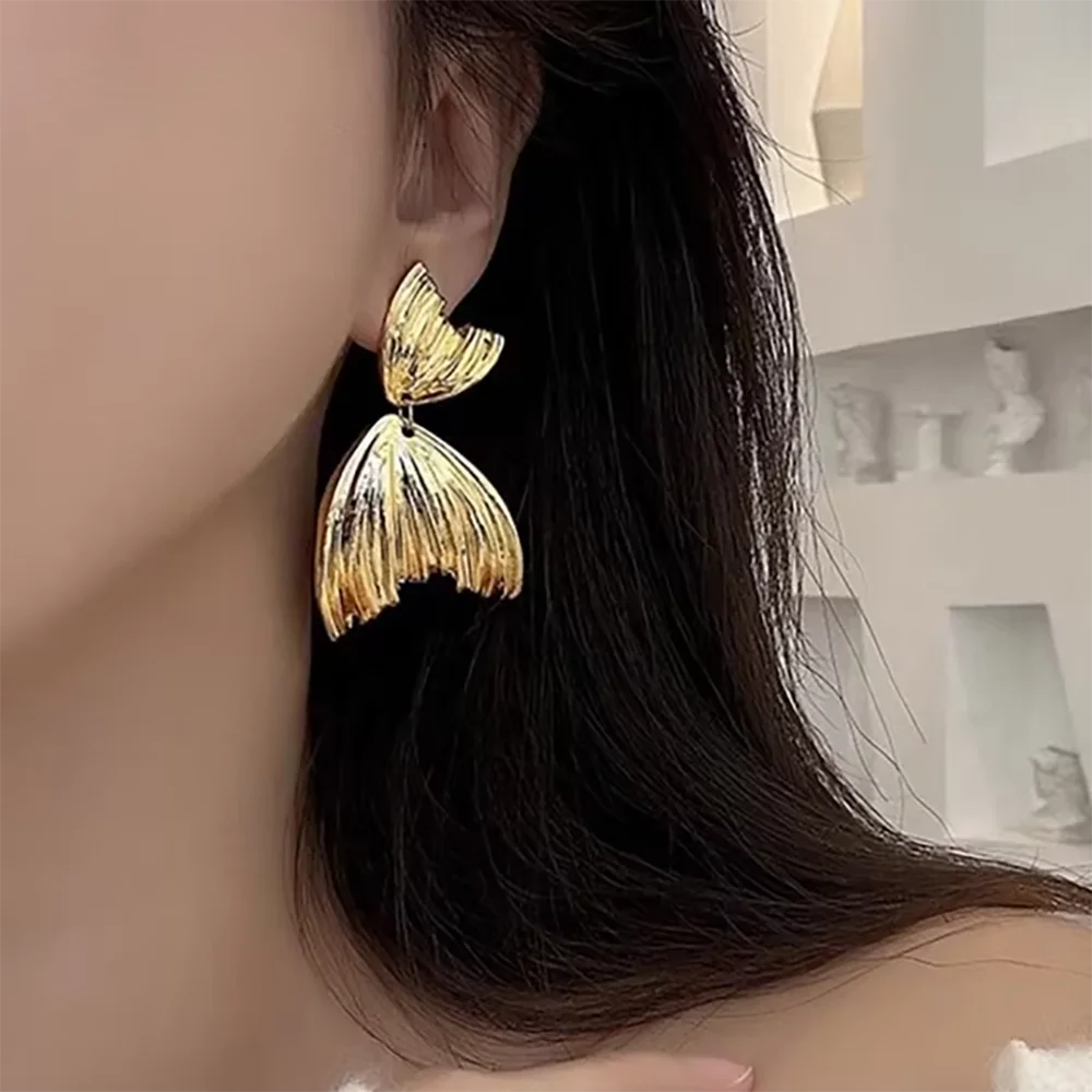 Geometry Metal Earrings Daily Wear Fashion Irregular Fish Tail Stud Earrings Women Gold Color Banquet Jewelry Birthday Gifts