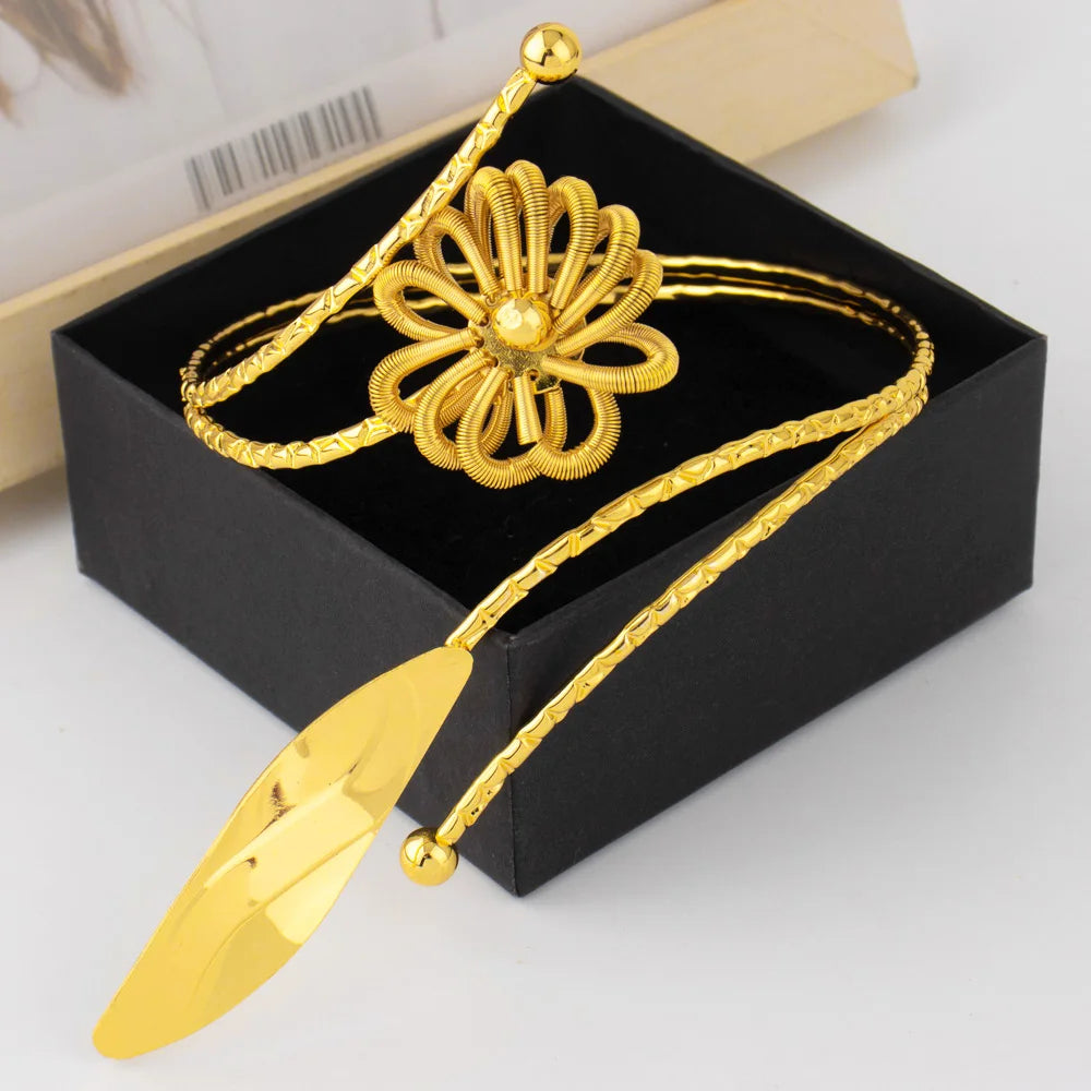 Ghana Trendy Flower Leaves Shape Armlet for Women Dubai Upper Arm Hollow Out Bangle Party Wedding Easter Adjustable Jewelry Gift