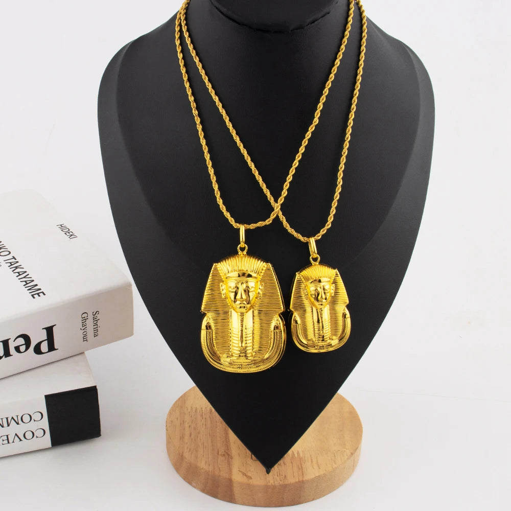 Gold Color Egyptian Pharaoh Pendant Fashion18K Golden Plated Necklace Mens Women Egyptian Jewelry Music Festival Party Gift