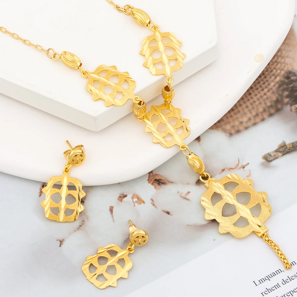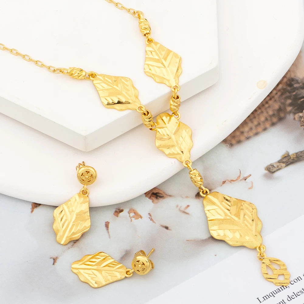 Gold Color Long Necklace and Earrings Jewelry Set Italian 18K Gold Plated Copper Drop Earrings and Necklace Party Anniversary